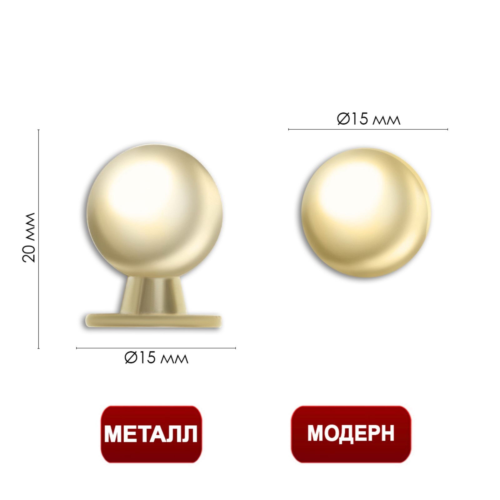 Размер упаковки: 1.5 x 1.5 x 2.3 см. tnved: 8302420000 Гарантийный срок, мес.: 6 Форма: Шар Цвет: Золото Металлическая круглая ручка-кнопка подойдёт для фасадов мебели кухни, гостиной или спальни. | ||