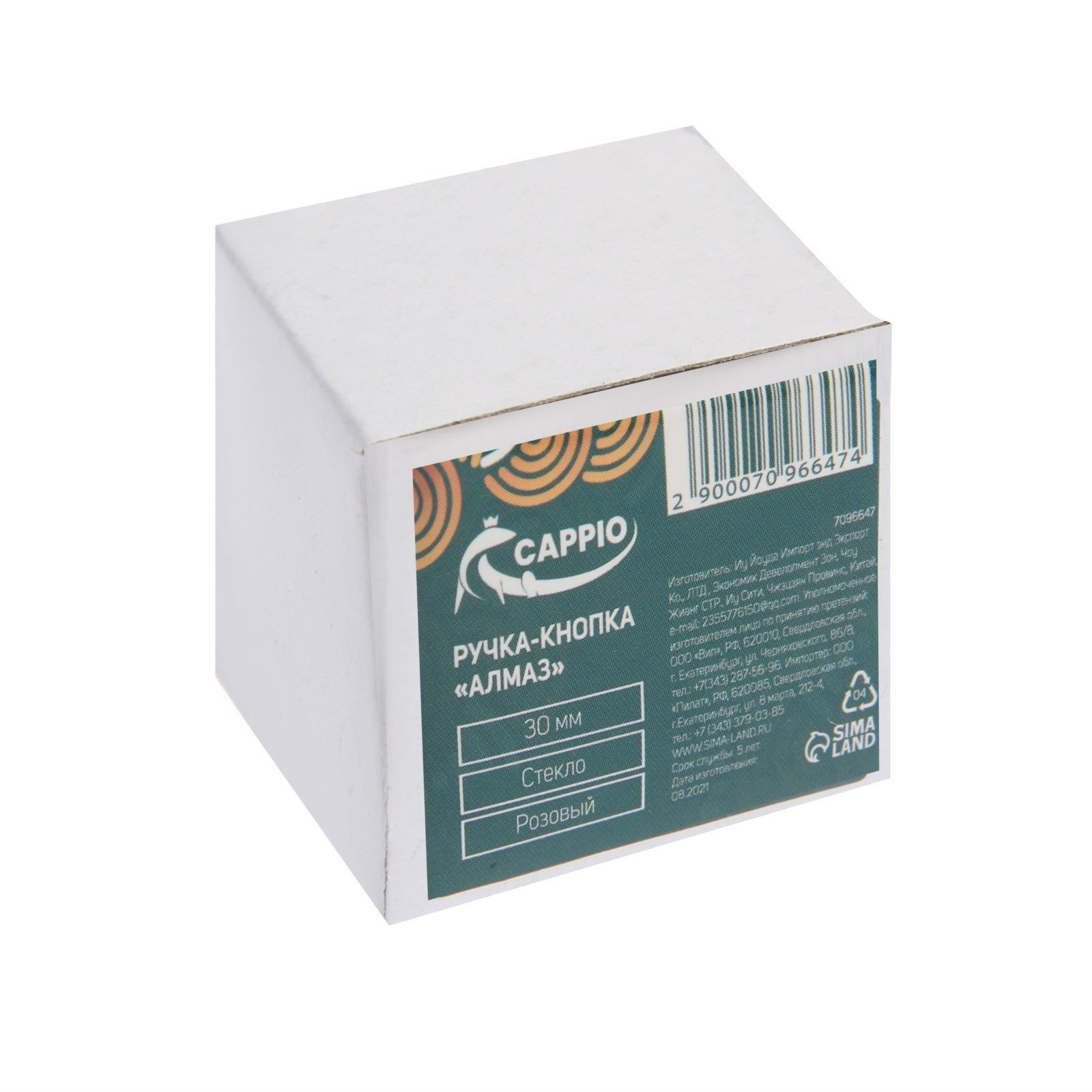 Ручка-кнопка "Алмаз", цвет розовый, стеклянная, d=30 мм, 3x3x3 см., CAPPIO, Китай