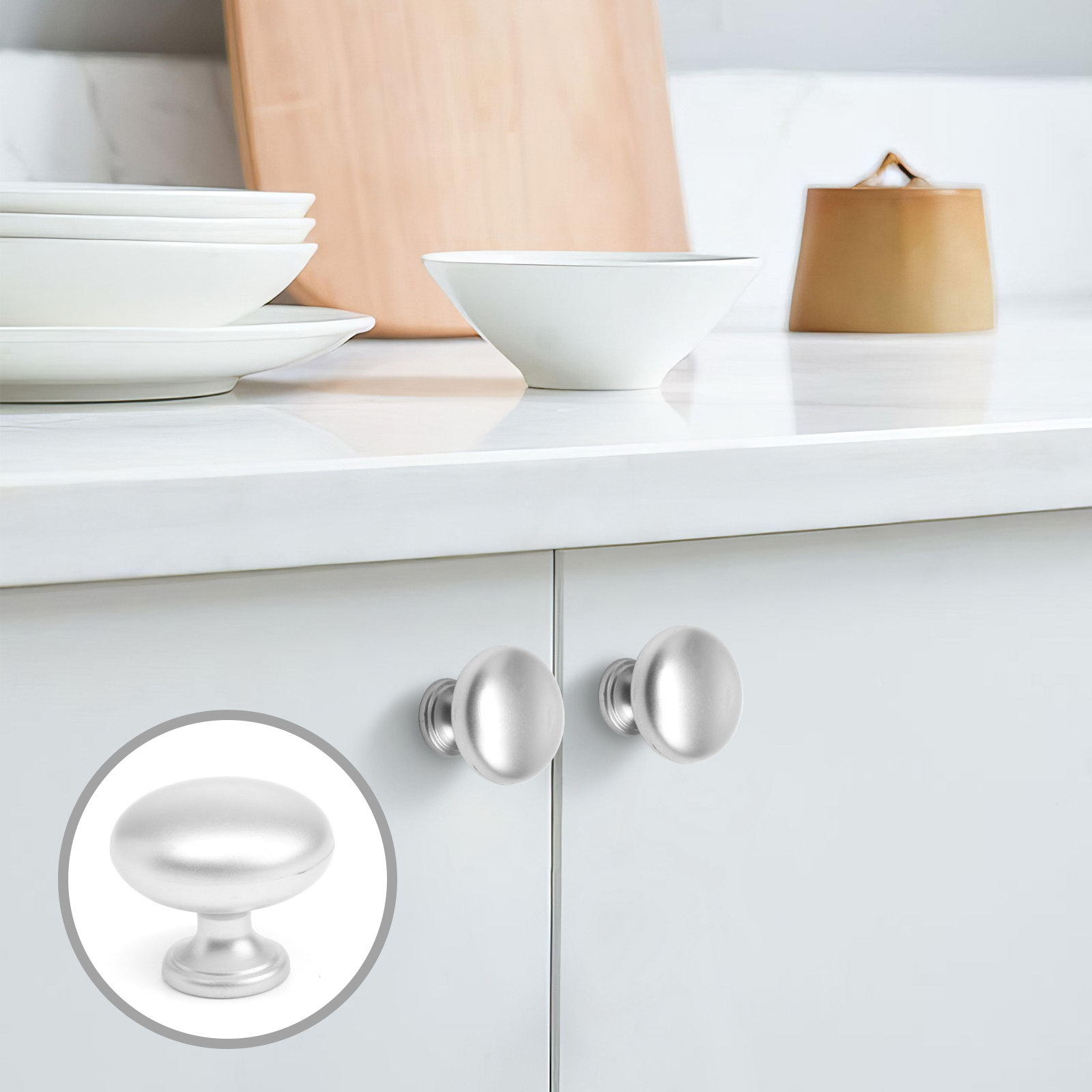 Ручка-кнопка РК120, d=32 мм, пластик, цвет матовый хром, 3.2x3.2x2.8 см., CAPPIO, Китай