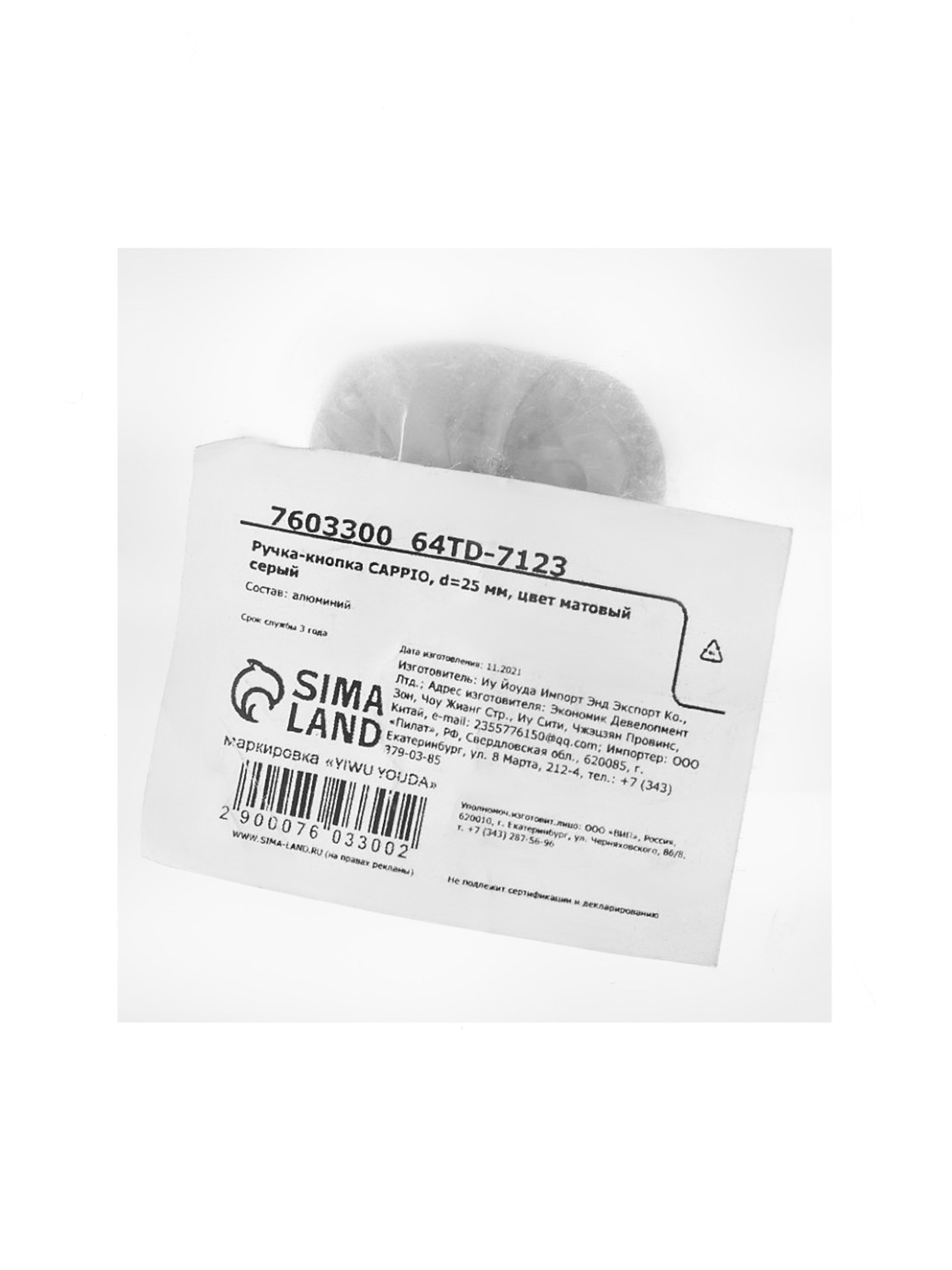 Ручка-кнопка d=25 мм, цвет матовый серый, 2.5x2.5x2.4 см., CAPPIO, Китай