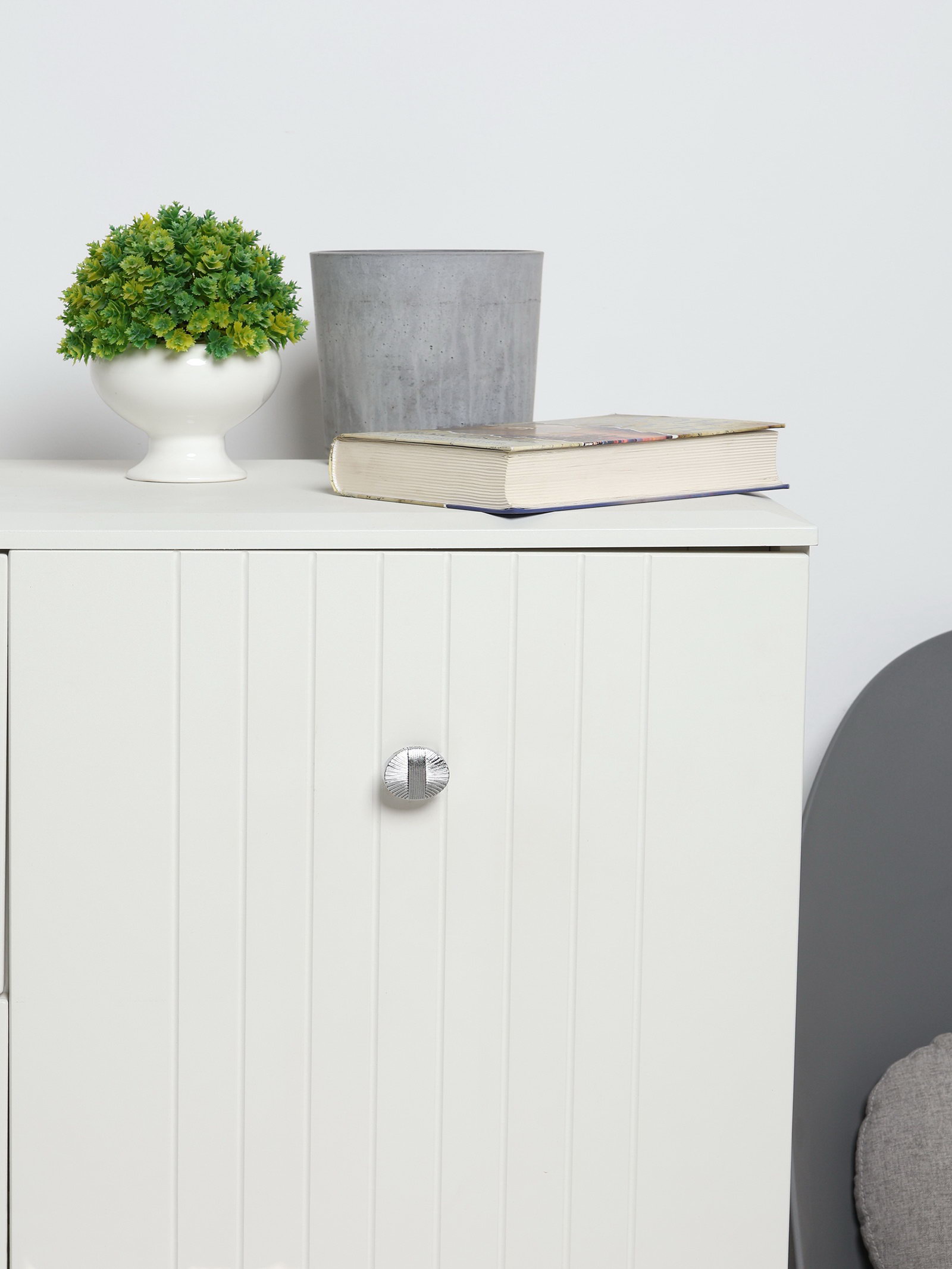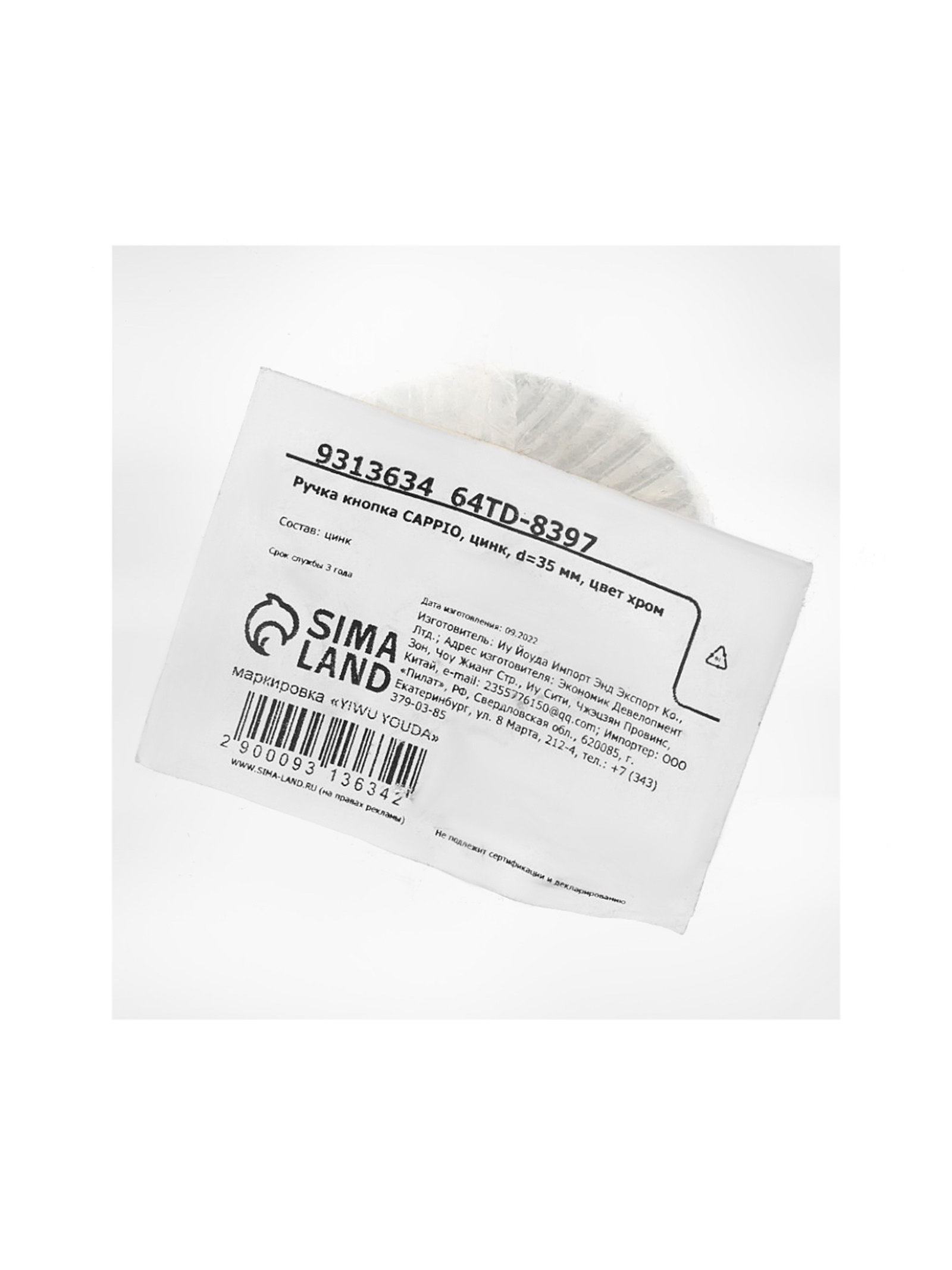 Размер упаковки: 3 x 2 x 3 см. tnved: 8302420000 Гарантийный срок, мес.: 6 Форма: Фигурная Цвет: Хром Фигурная ручка-кнопка 35 мм, хром ручка из цинкового сплава с зеркальным хромированным покрытием. Рельефная поверхность создает игру света.