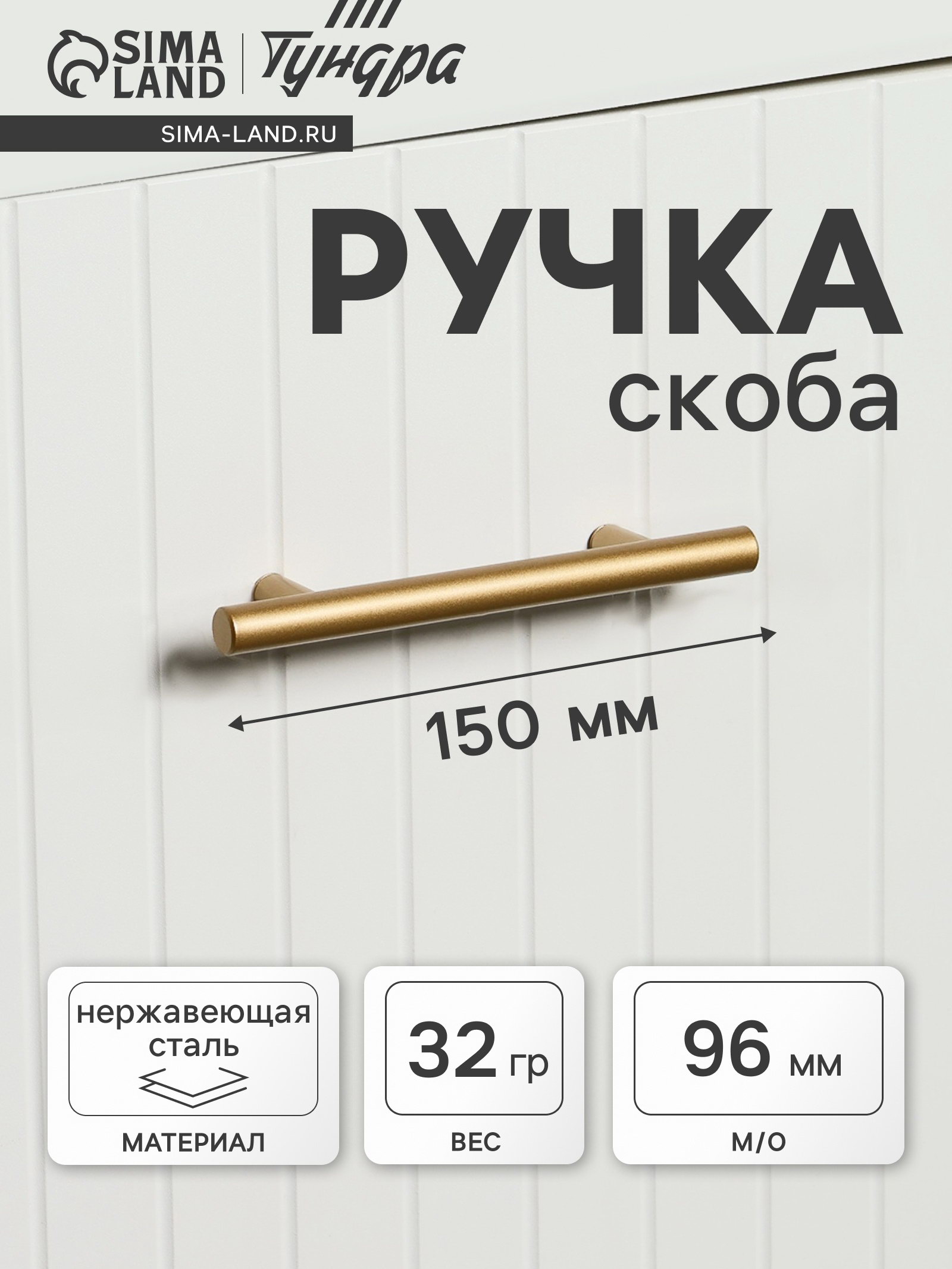 Размер упаковки: 3.2 x 1.2 x 15 см. Цвет: Золото Межосевое расстояние, мм: 96 Длина ручки, мм: 150 tnved: 8302420000 Гарантийный срок, мес.: 6 Рейлинговая ручка ТУНДРА, облегченная, золото, 150 мм это круглая ручка из нержавеющей стали для мебели в современном стиле. Золотое покрытие создает акцентный элемент на фасаде.