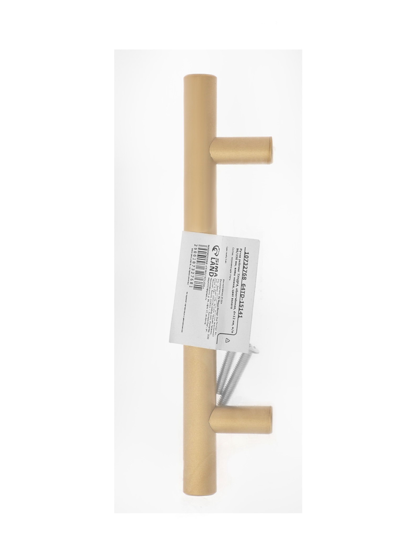 Ручка рейлинг облегчённая, d=12 мм, м/о 96/150 мм, внеш ножка, цвет золото, 1.2x15x3.2 см., ТУНДРА, Китай