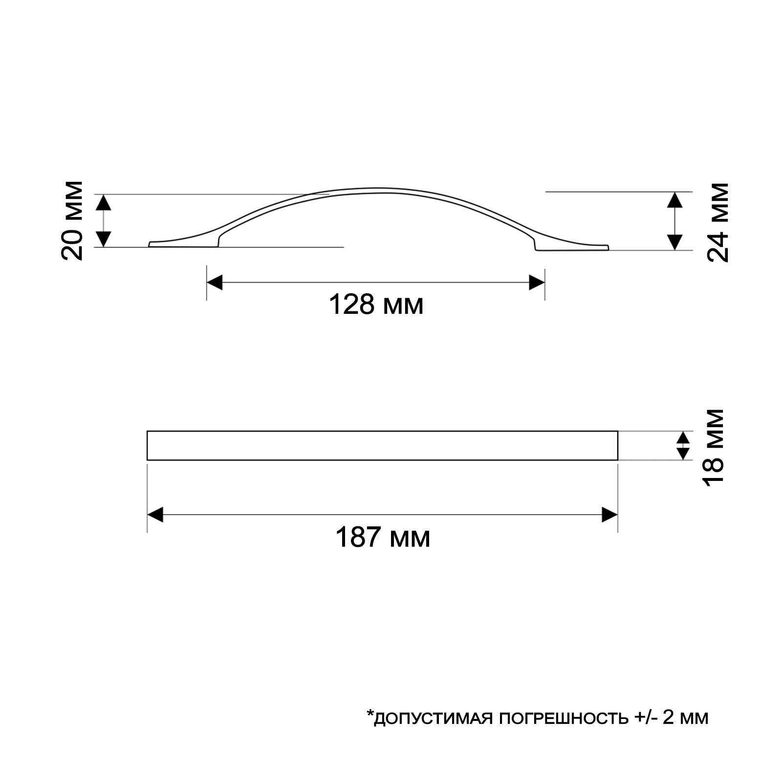 Ручка-скоба мебельная РС134, м/о 128 мм, цвет хром, 1.5x14x3 см., ТУНДРА, Китай