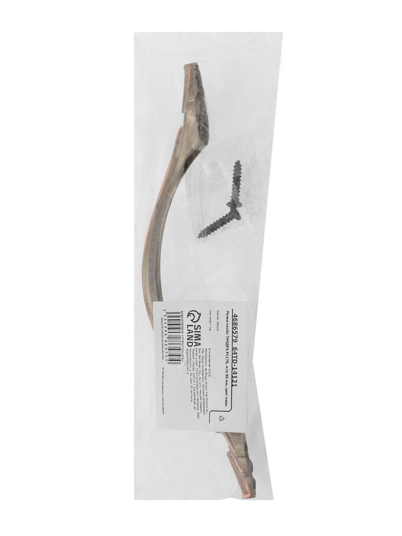 Ручка-скоба мебельная PC176, м/о 96 мм, цвет медь, 2x13x2 см., ТУНДРА, Китай