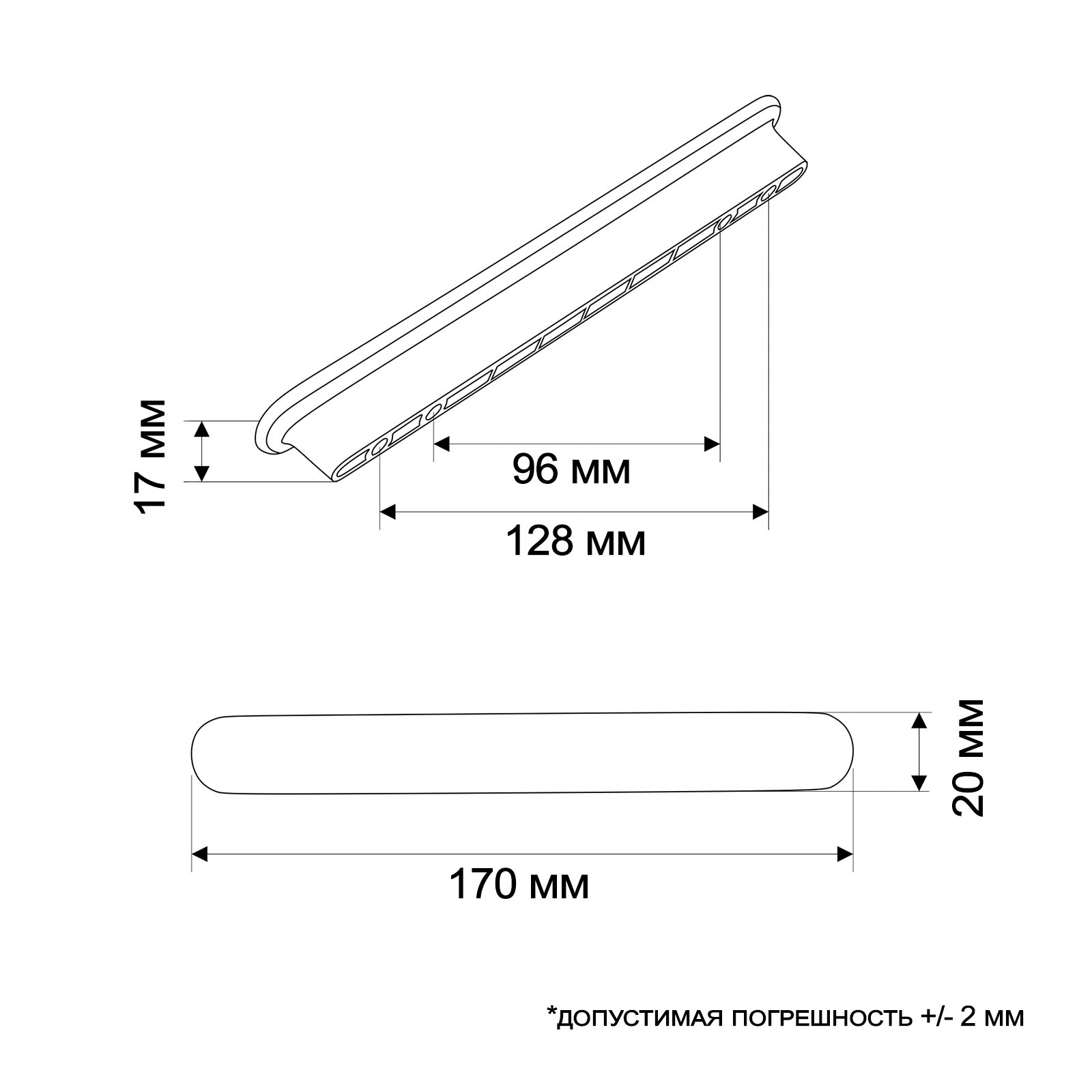 Межосевое расстояние, мм: 96, 128 Размер упаковки: 2 x 2 x 16 см. Длина ручки, мм: 170 tnved: 3926909700 tnved: 3926909700 Температурное ограничение: Нет Цвет: Чёрный глянец | ||