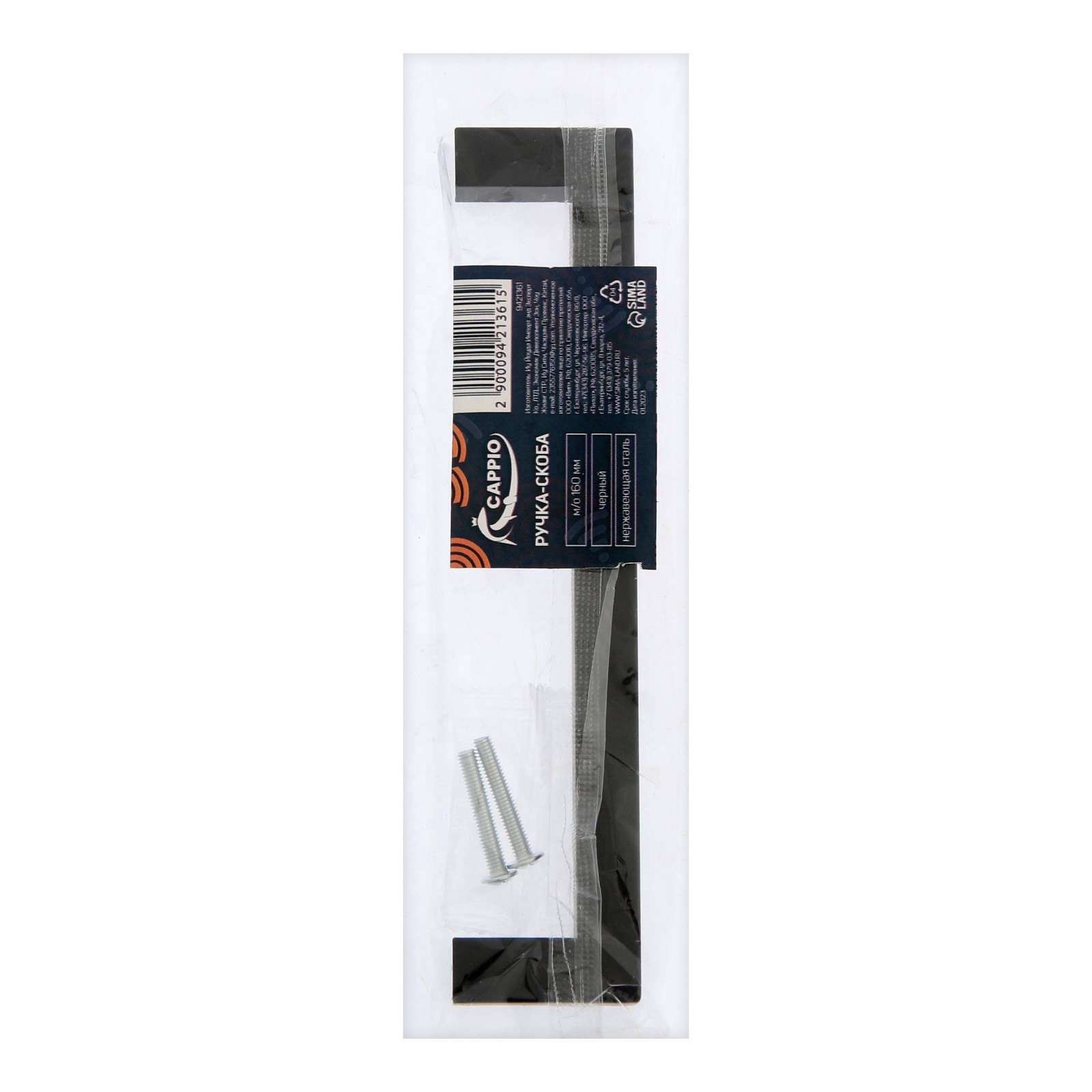 Ручка-скоба SQUARE RSC008, нержавеющая сталь, м/о 160 мм, цвет черный, 3.5x18x1 см., CAPPIO, Китай