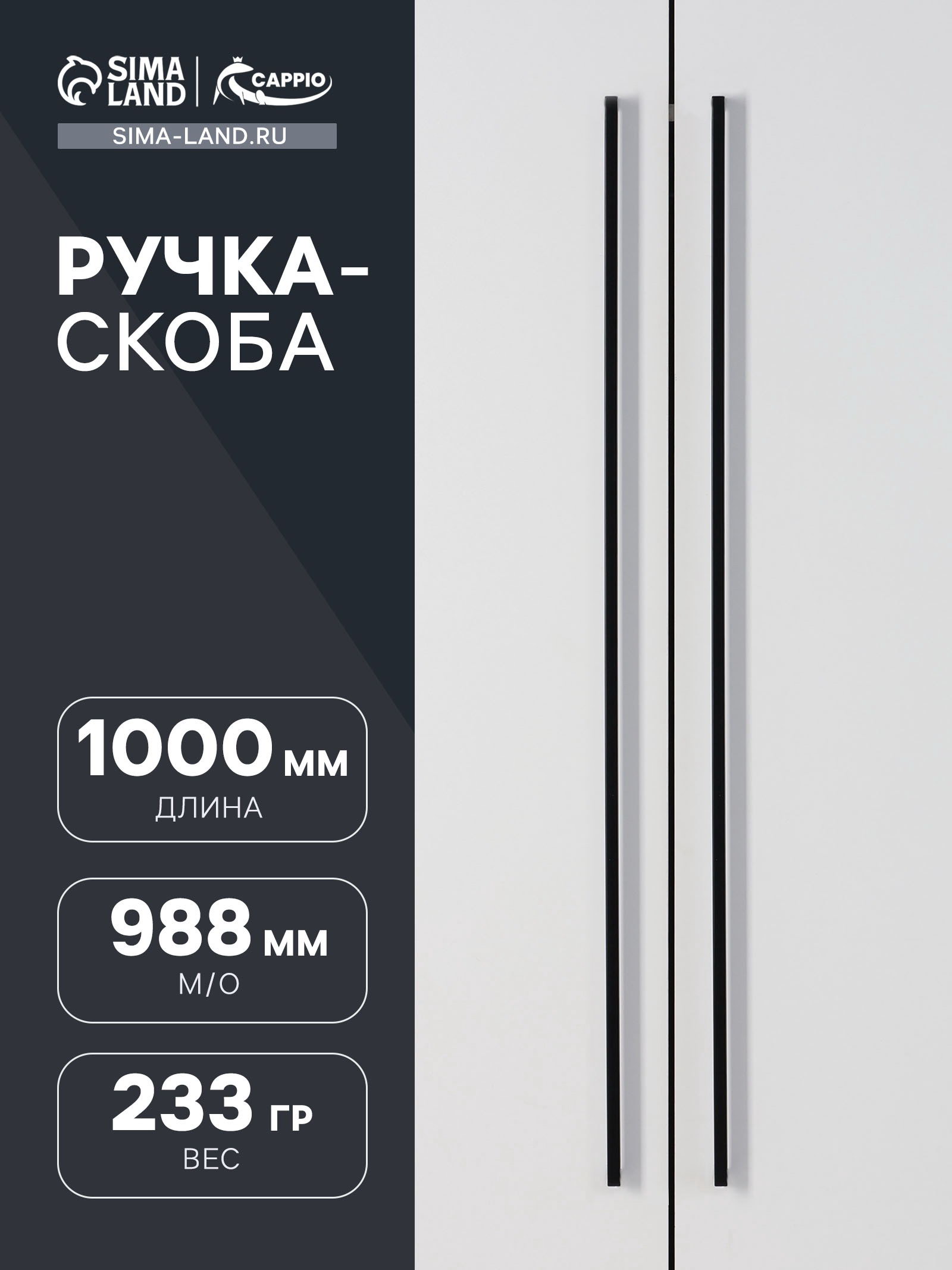 Ручка-скоба SQUARE RSC008, нержавеющая сталь, м/о 988 мм, цвет черный, 1.2x100x3.5 см., CAPPIO, Китай