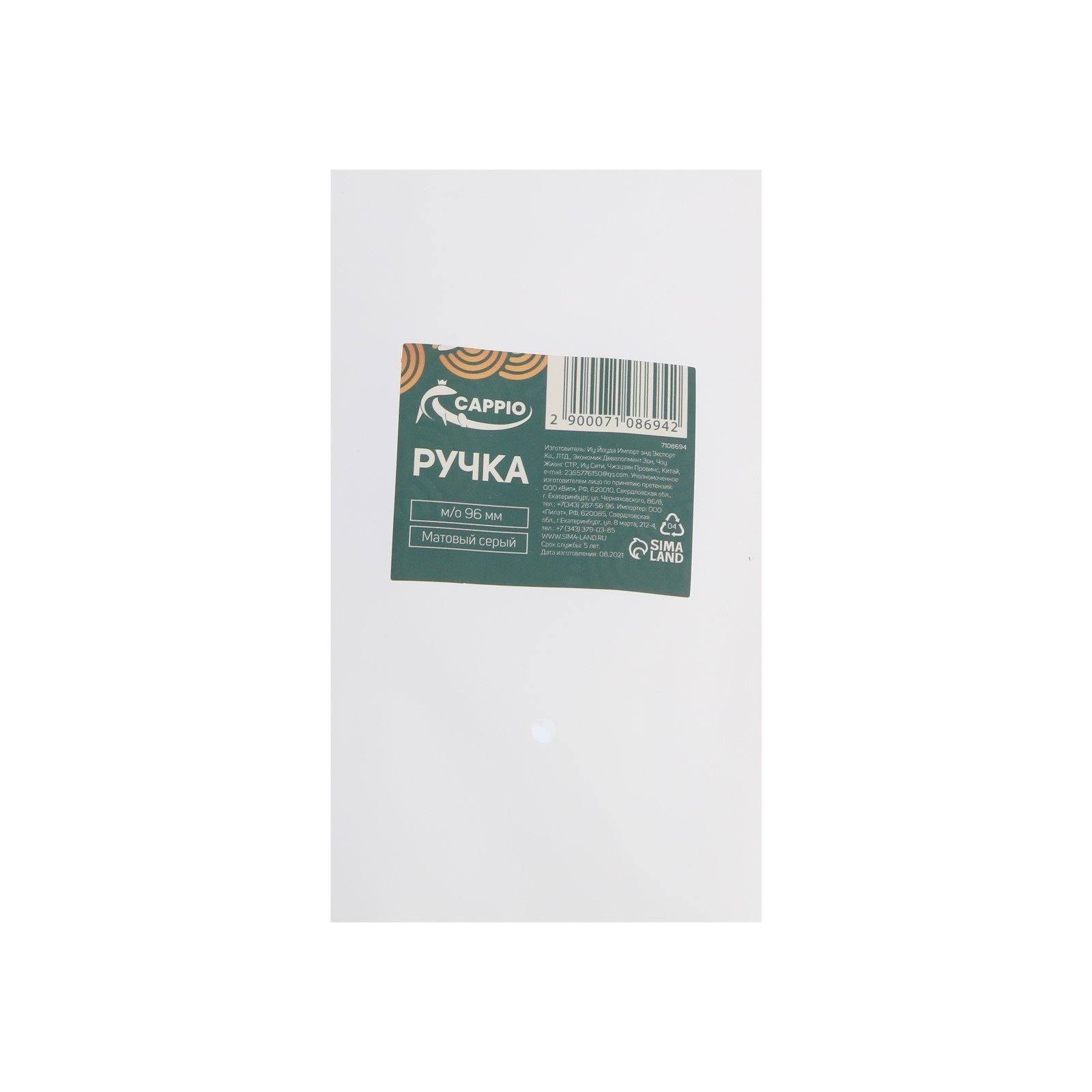 Ручка м/о 96 мм, цвет матовый серый, 2.4x11.6x4.5 см., CAPPIO, Китай