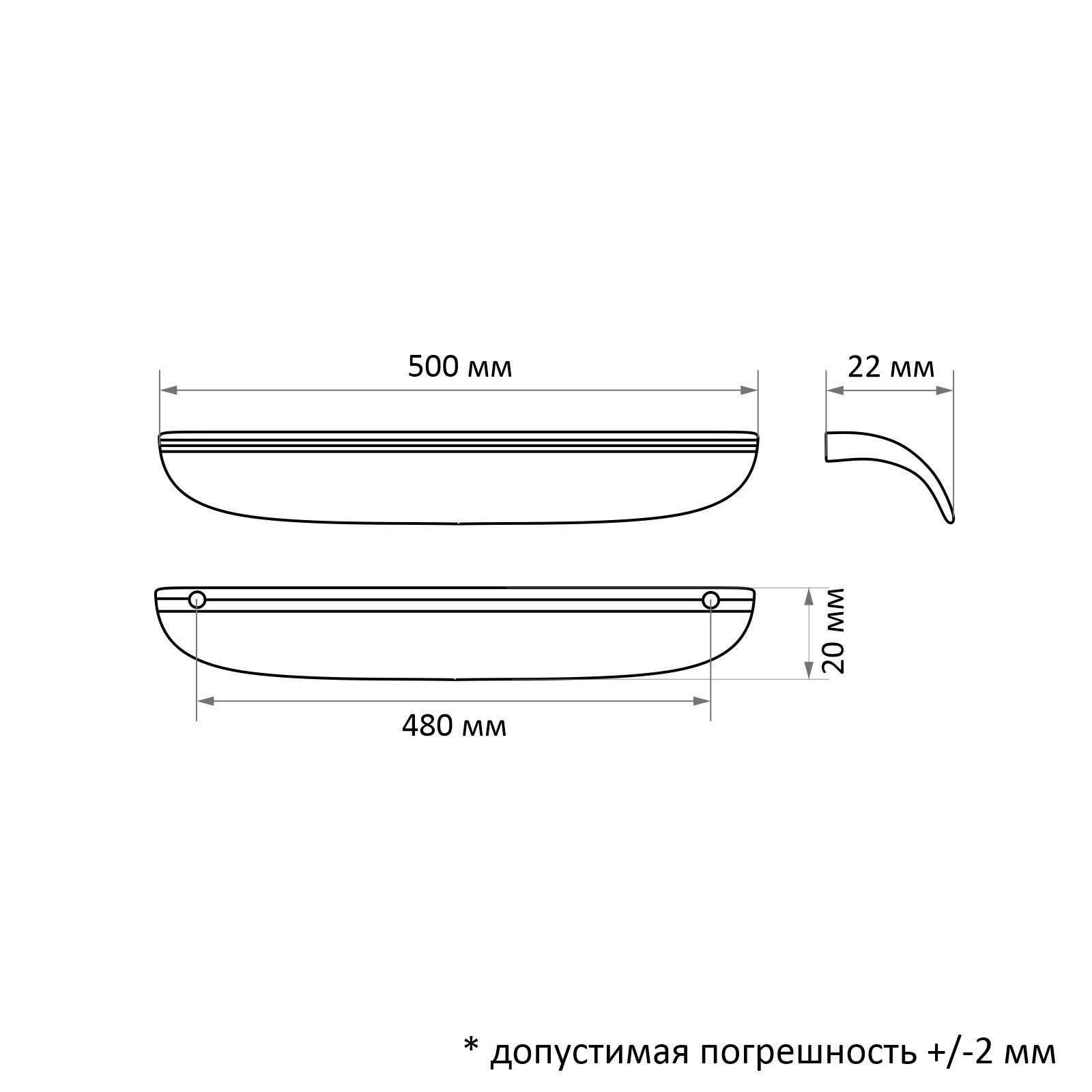 Размер упаковки: 3 x 1 x 50 см. Длина, мм: 500 Форма: Трапеция Форма: Трапеция tnved: 8302420000 Цвет: Сатиновое золото Межосевое расстояние, мм: 480 | ||