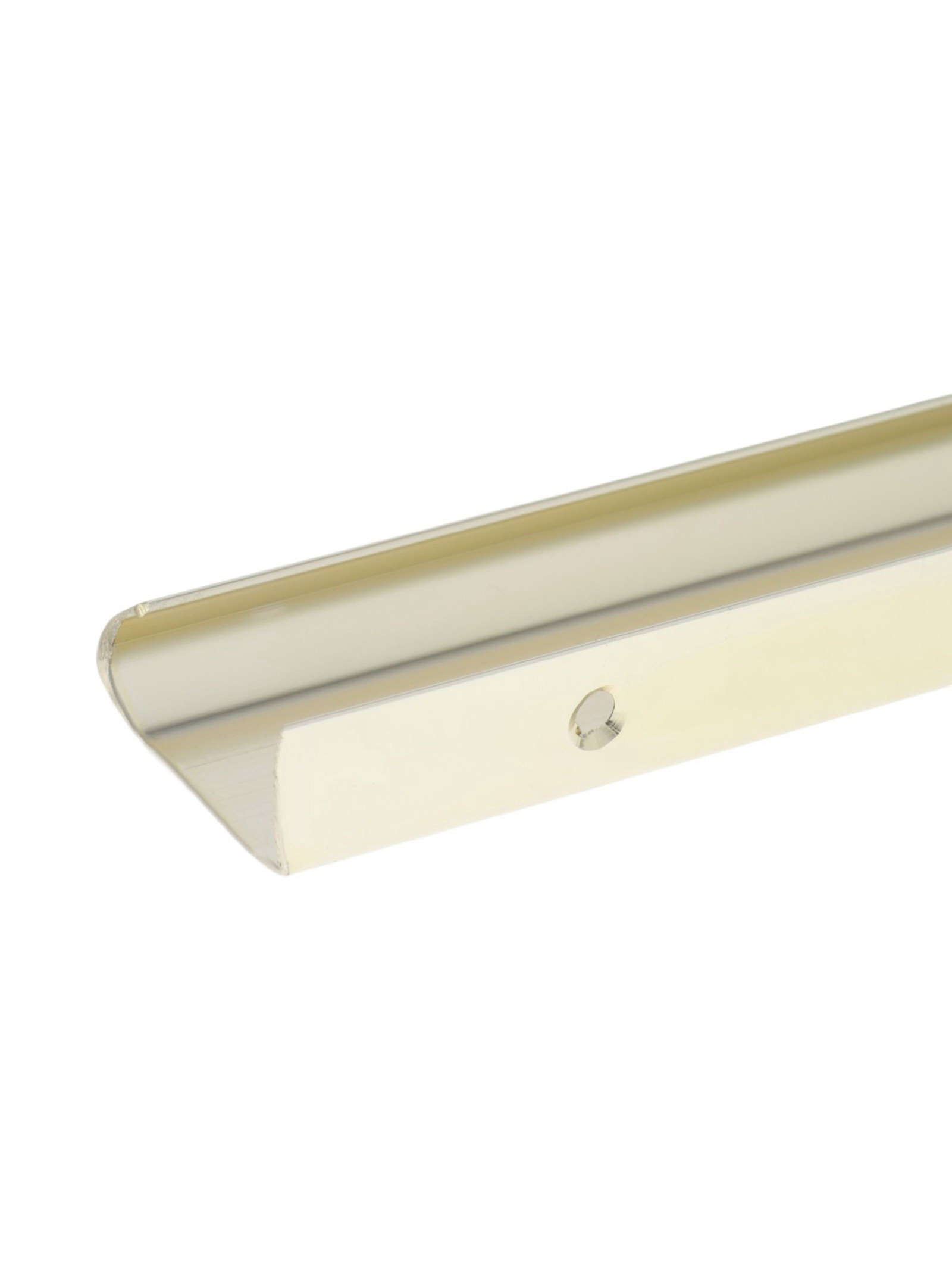 Размер упаковки: 4 x 2 x 30 см. tnved: 8302420000 Гарантийный срок, мес.: 6 Межосевое расстояние, мм: 224 Длина ручки, мм: 300 Цвет: Сатиновое золото Форма: Г-образная Торцевая мебельная ручка, длина 300 мм, межосевое расстояние 224 мм, алюминий, цвет сатиновое золото фурнитура для фасадов шкафов-купе, гардеробных и комодов. Изготовлена из алюминия с покрытием под сатиновое золото. Г-образная форма с удлиненной консолью удобна для захвата. Торцевое расположение подходит для фасадов без выступающих элементов.