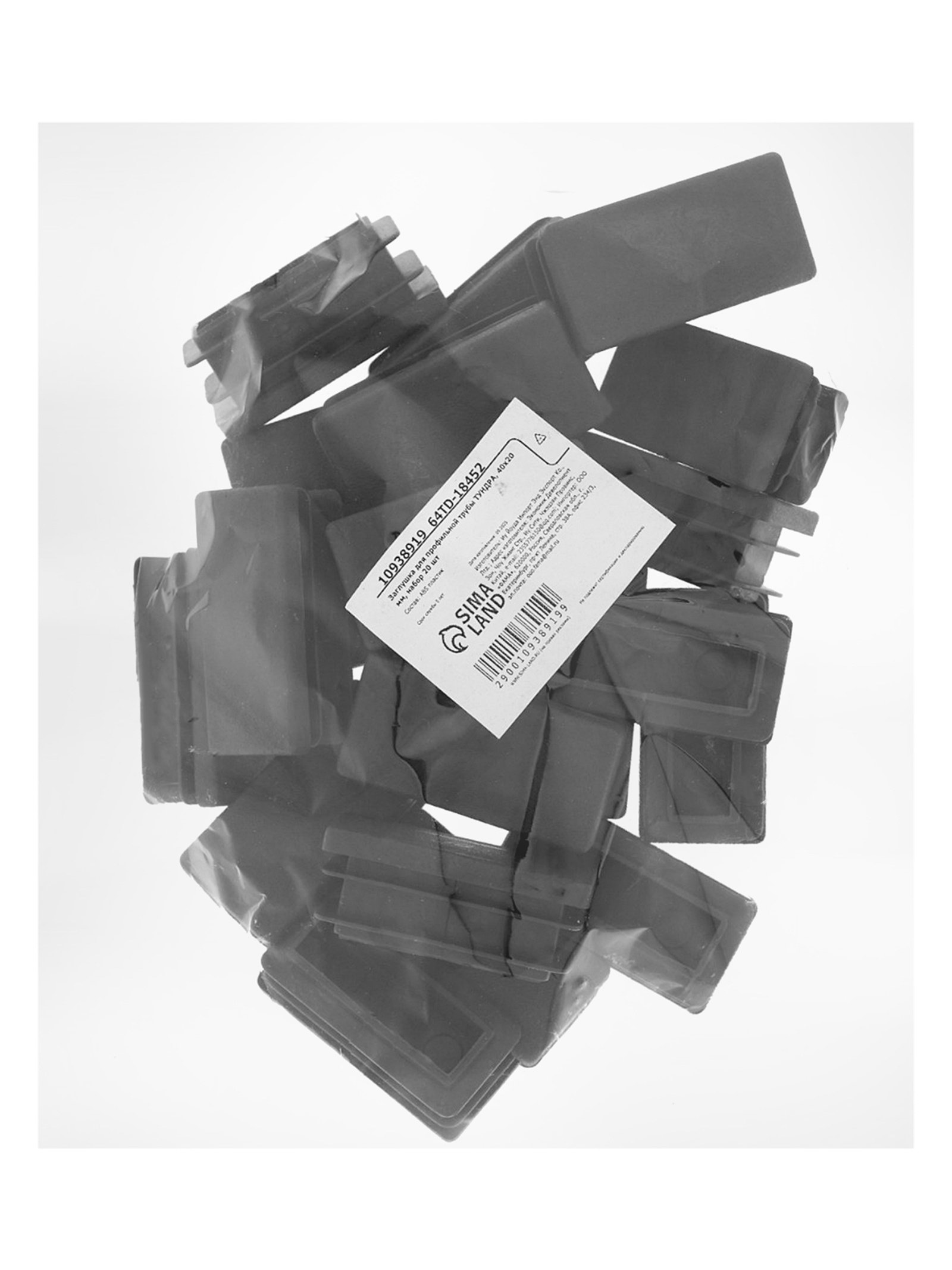 Заглушка для профильной трубы 40x20 мм, набор 20 шт., 2x4x1.2 см., ТУНДРА, Китай