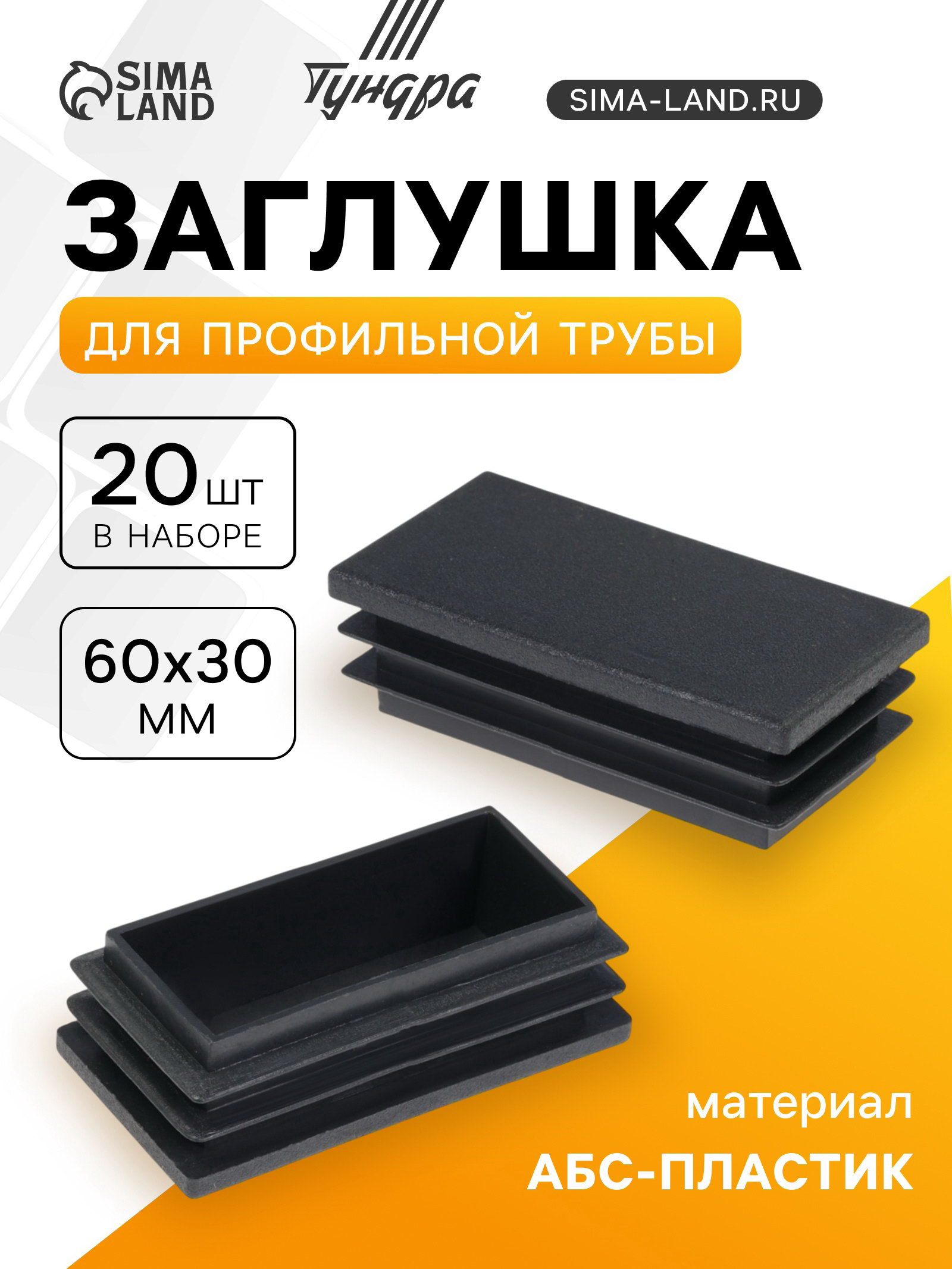 Заглушка для профильной трубы 60x30 мм, набор 20 шт., 3x6x1.2 см., ТУНДРА, Китай