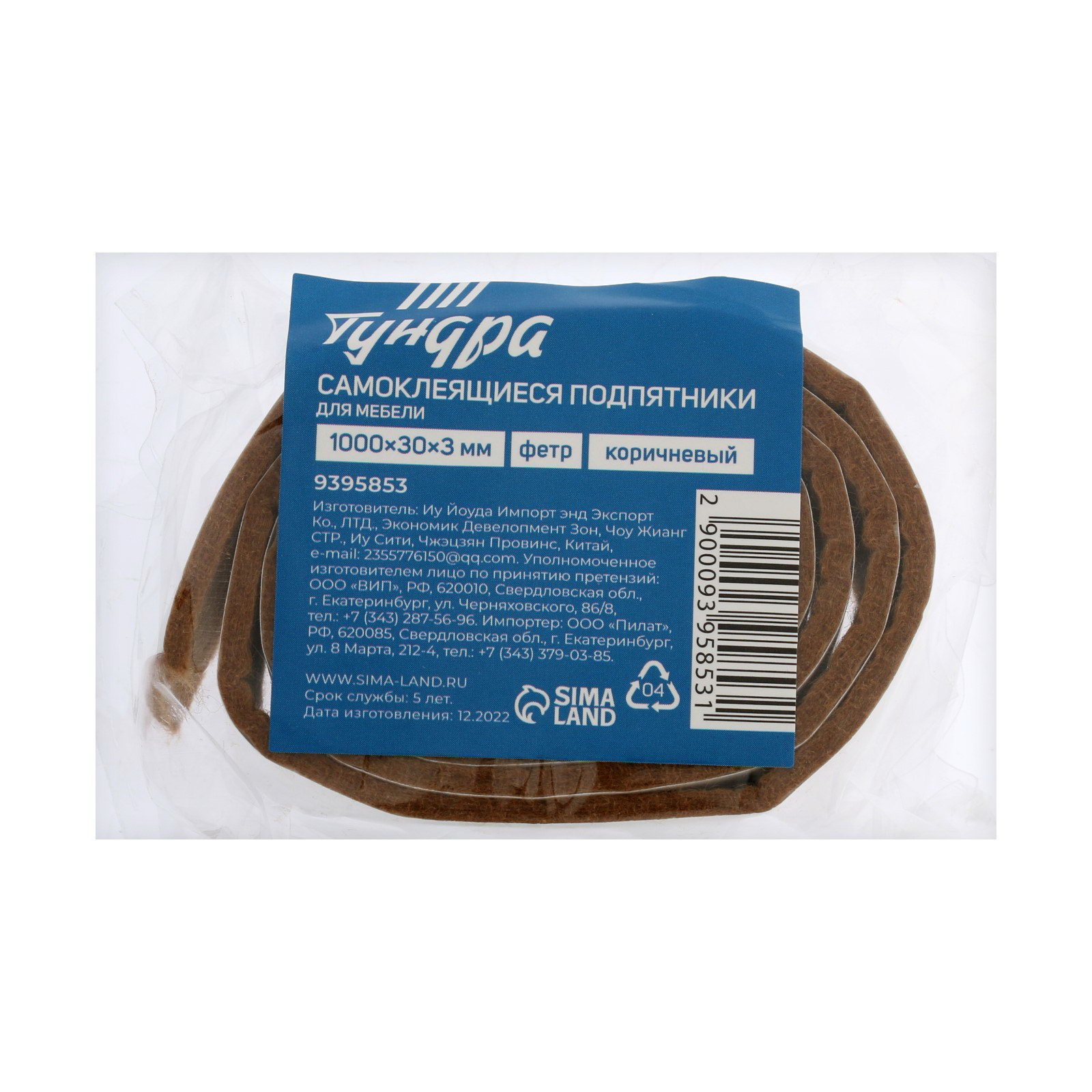 Самоклеящиеся подпятники для мебели 100x3x0.3 см, фетр, коричневые, 3x100x0.3 см., ТУНДРА, Китай