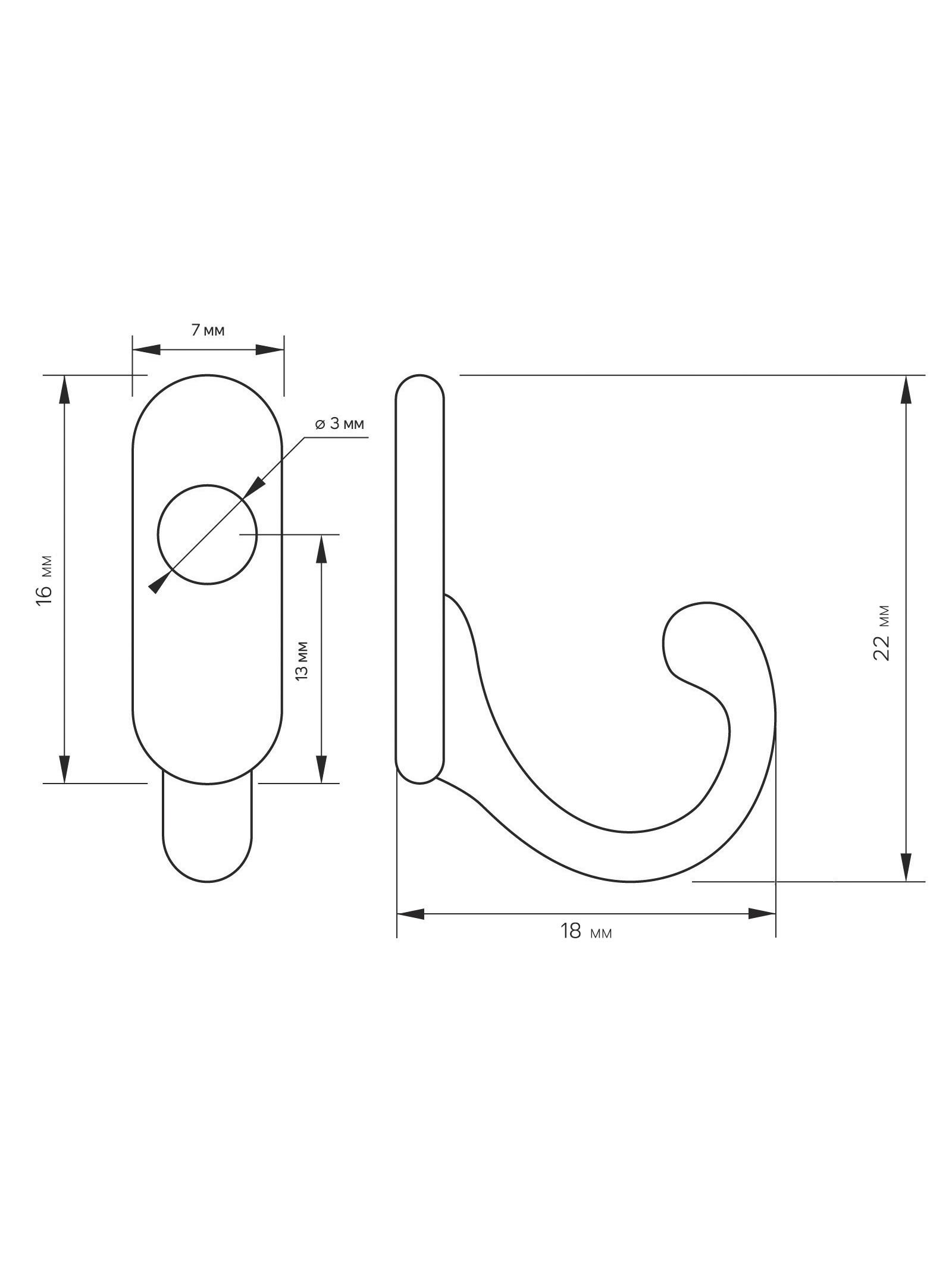 Крючок мебельный TKO014, однорожковый, бронза, 50 шт., 0.6x2.6x2.2 см., ТУНДРА, Китай