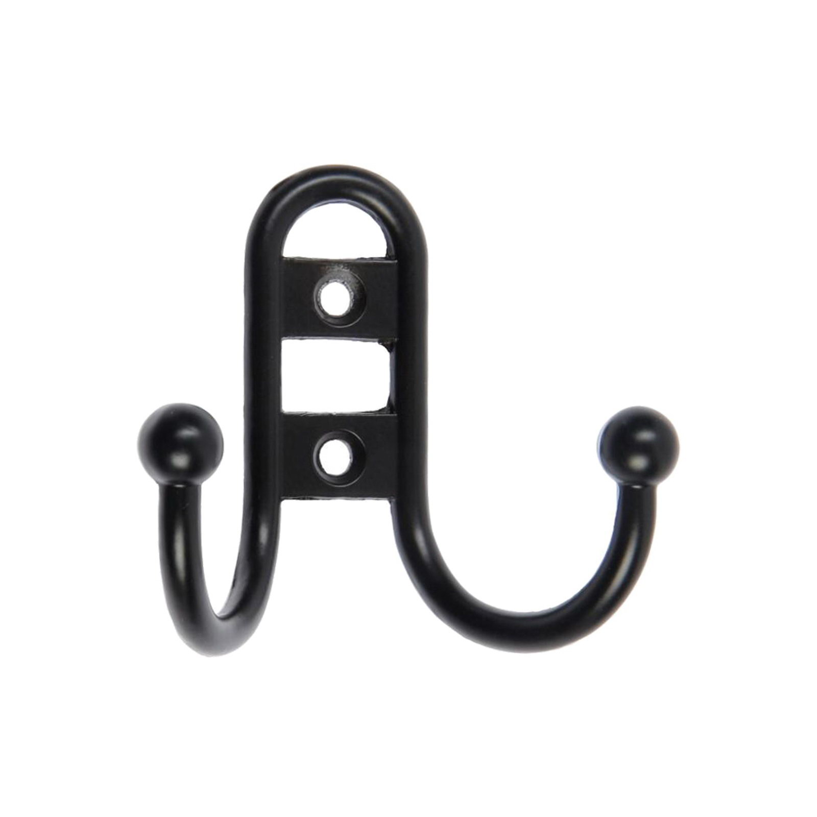 Крючок мебельный TKd=016, двухрожковый, черный, 7x6x3.5 см., ТУНДРА, Китай