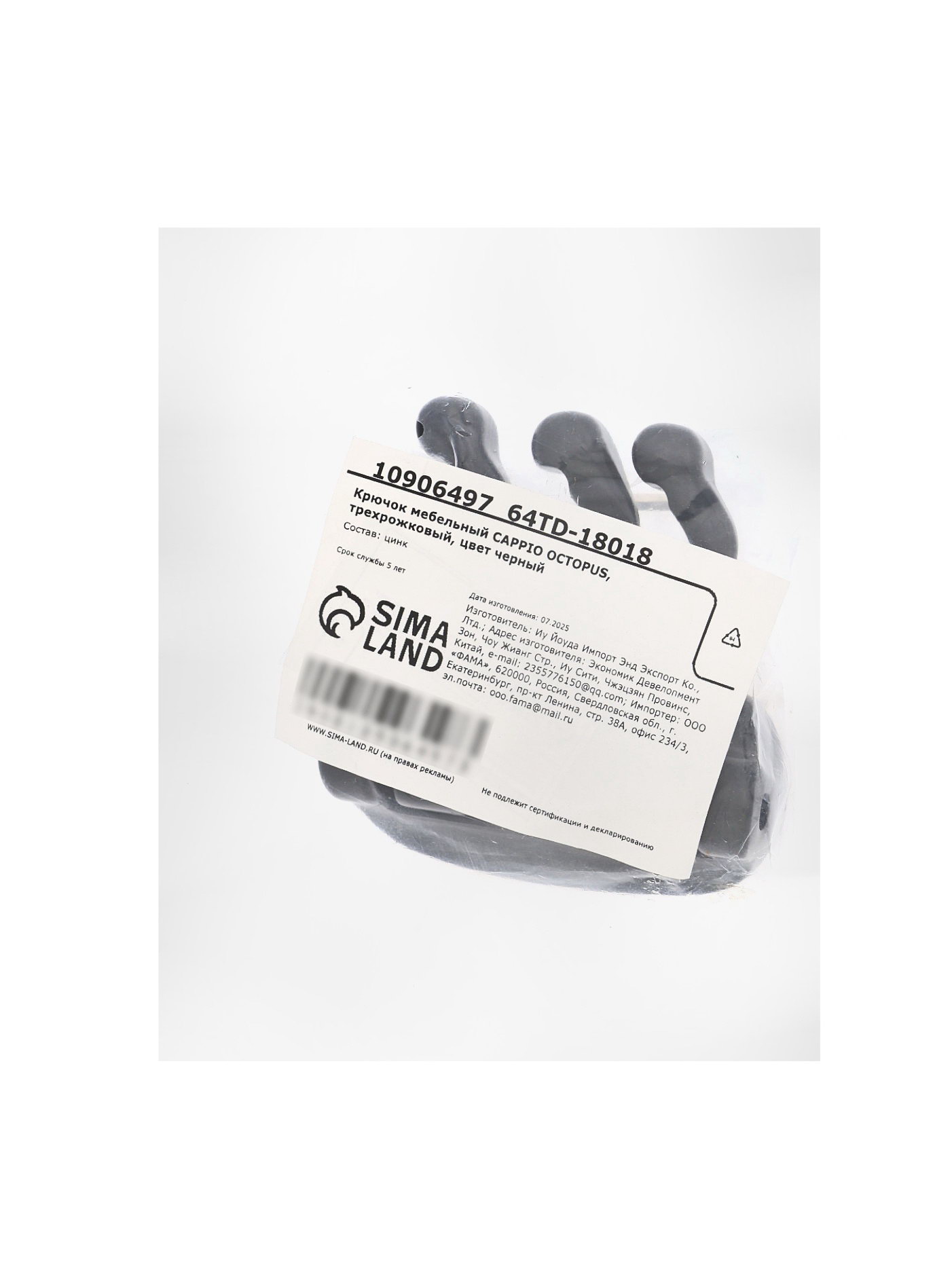 Крючок мебельный OCTOPUS, трехрожковый, черный, 6.8x6.2x2 см., CAPPIO, Китай