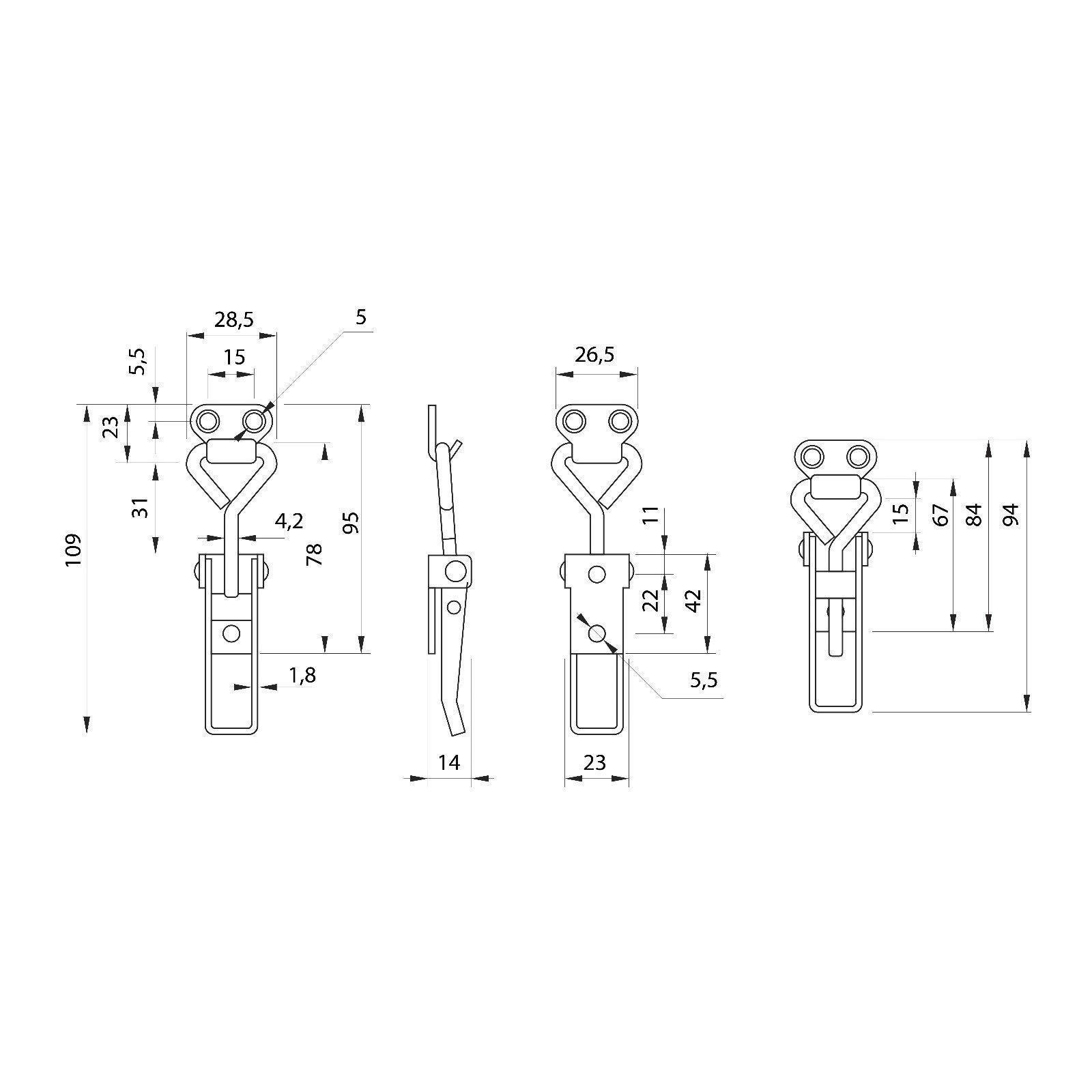 Замок защелка на ящик Z05, 2x9x1.5 см., ТУНДРА, Китай