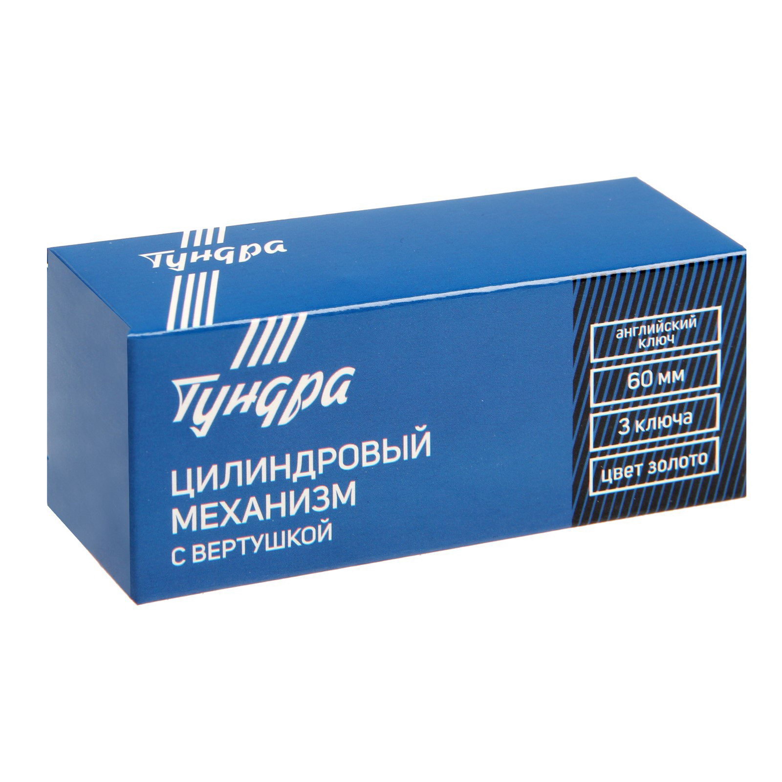 Цилиндровый механизм, 60 мм, с вертушкой, английский ключ, 3 ключа, золото, 3x9x5 см., ТУНДРА, Китай
