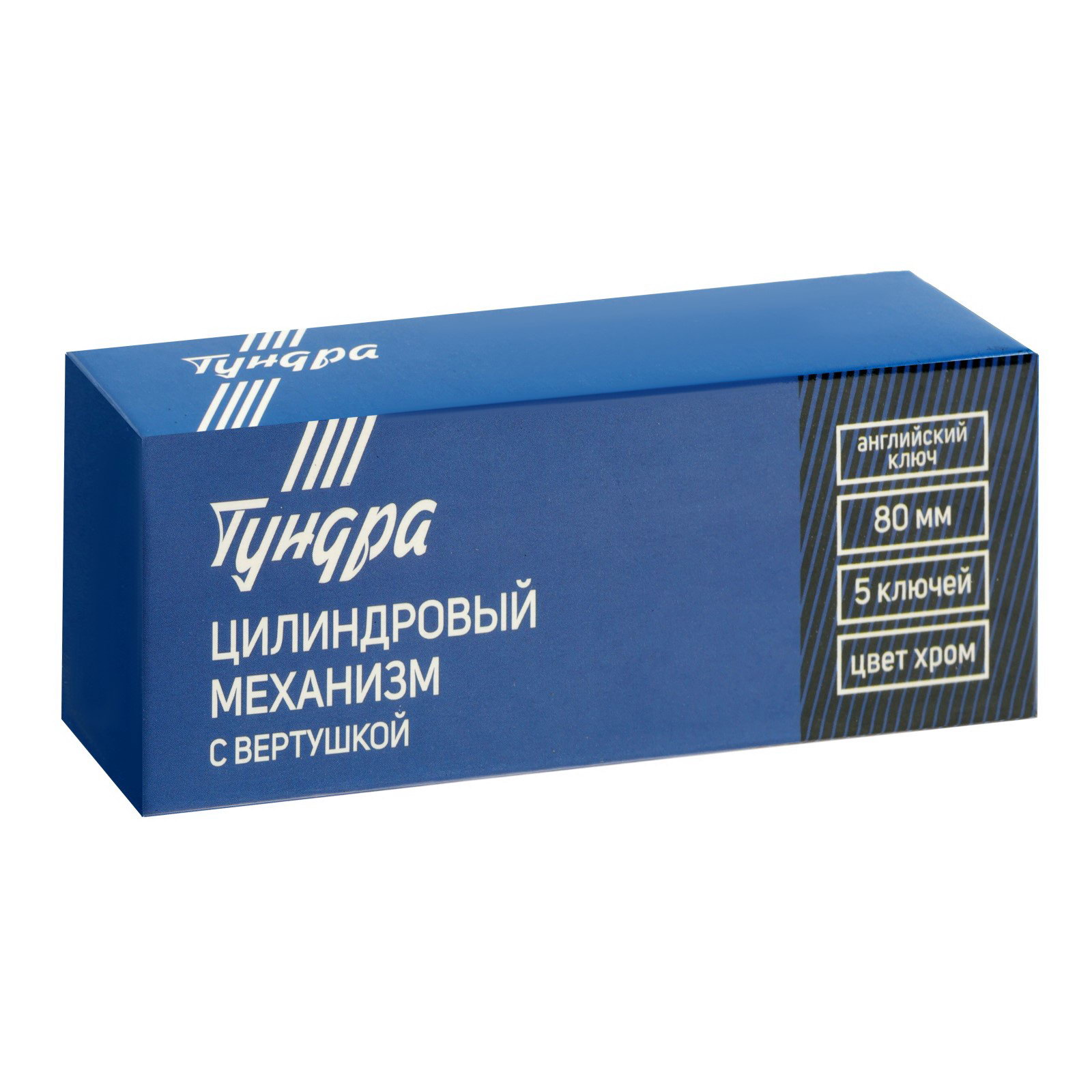 Цилиндровый механизм, 80 мм, с вертушкой, английский ключ, 5 ключей, цвет хром, 3x11x5 см., ТУНДРА, Китай