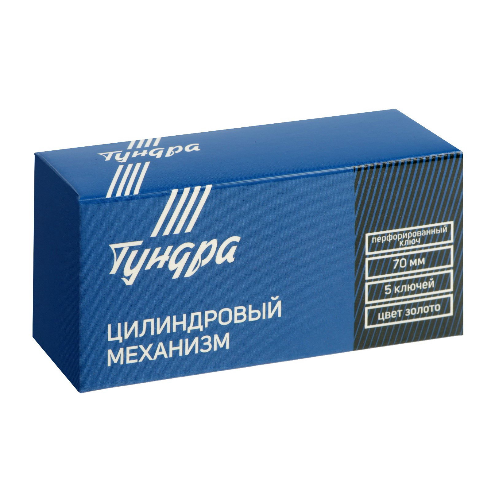 Цилиндровый механизм, 70 мм, перфор. ключ, 5 ключей, цвет золото, 3x8x5 см., ТУНДРА, Китай
