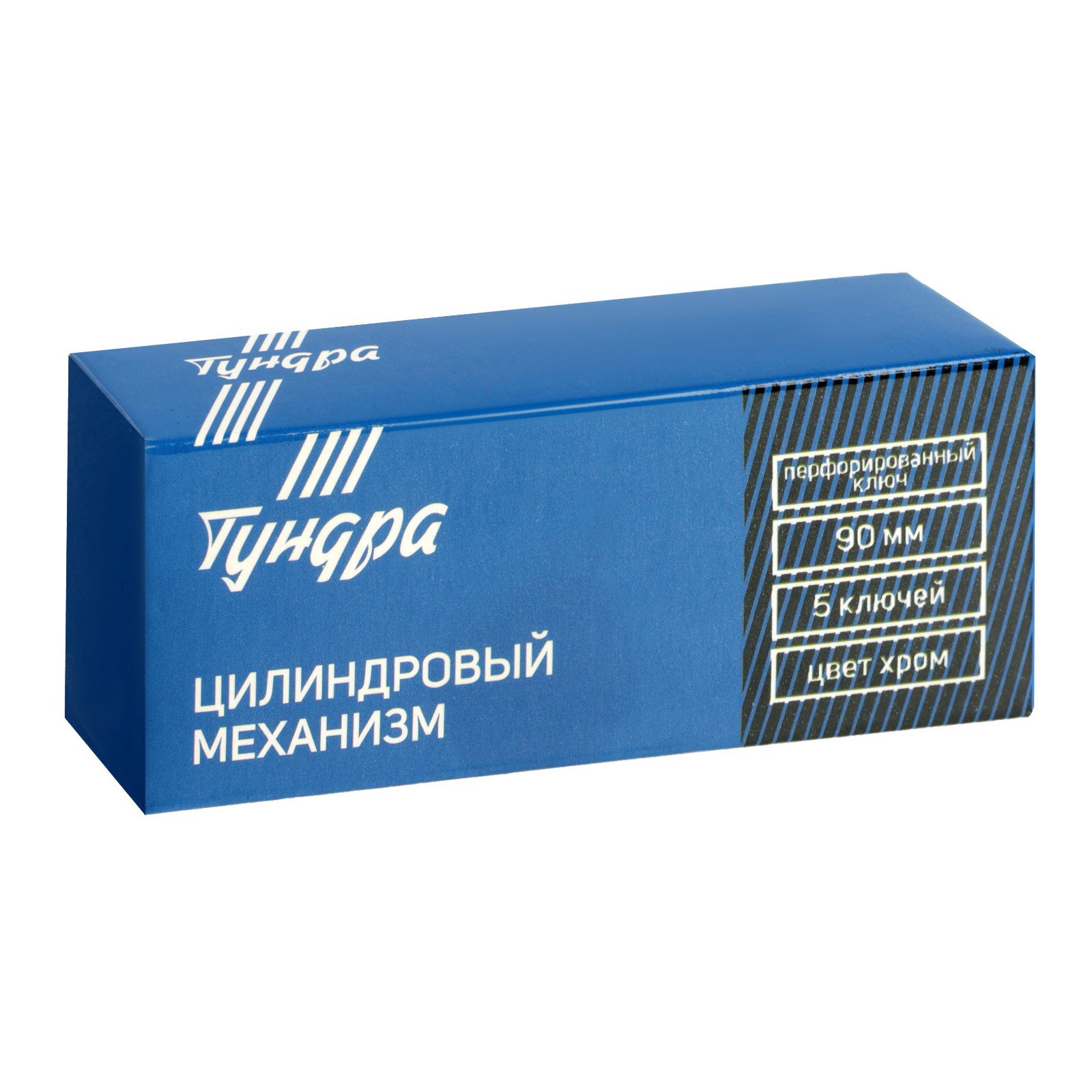 Цилиндровый механизм, 90 мм, перфор. ключ, 5 ключей, цвет хром, 3x10x5 см., ТУНДРА, Китай