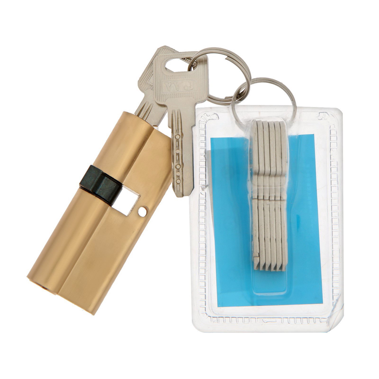 Цилиндровый механизм для китайской двери, 80 мм, латунь, 7 перф. ключей, 3.5x8x3 см., ТУНДРА, Китай