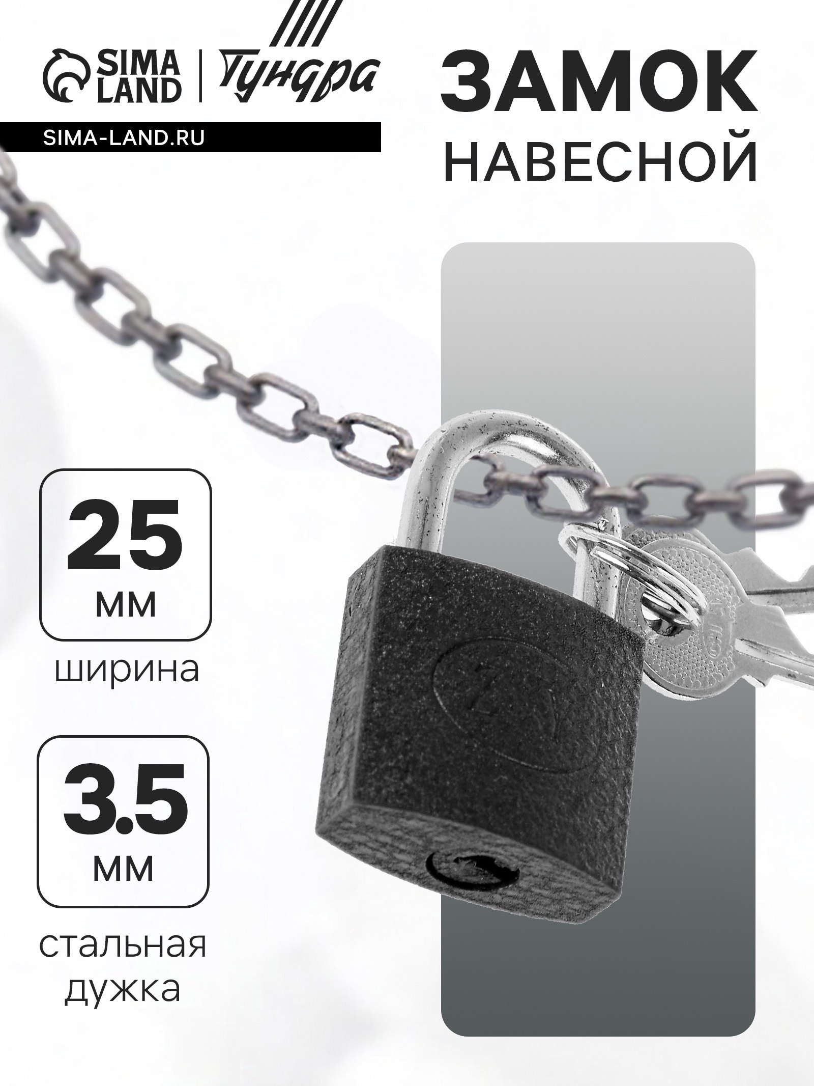 Замок навесной, тип 10, 25x42 мм, 2 ключа, 2.5x1.2x4.2 см., ТУНДРА, Китай