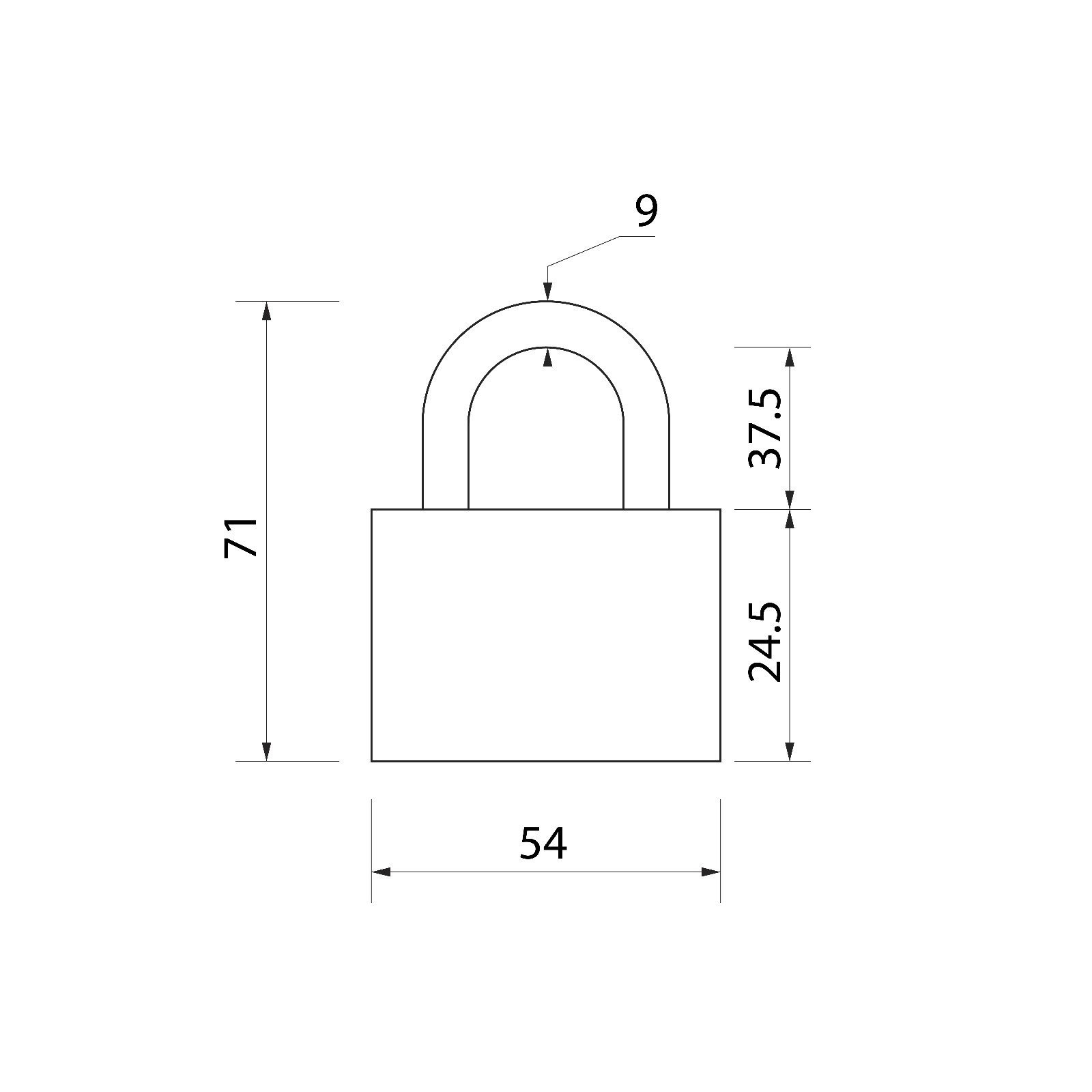Замок навесной, тип 7, 60 мм, короткая дужка d=9 мм, 6x2.5x7.1 см., ТУНДРА, Китай