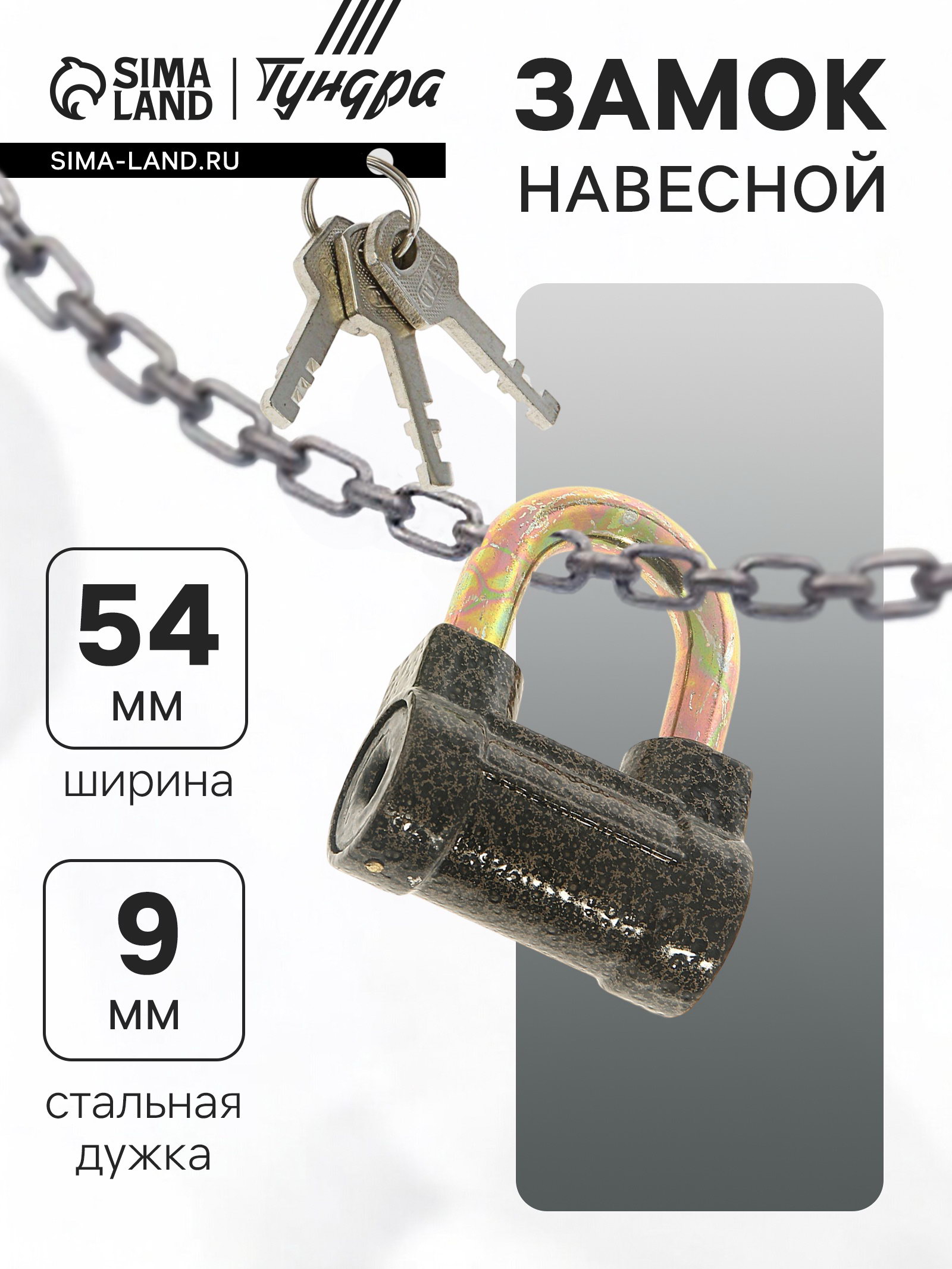 Замок навесной, тип 8, 60 мм, короткая дужка d=9 мм, 6x2.5x6.8 см., ТУНДРА, Китай