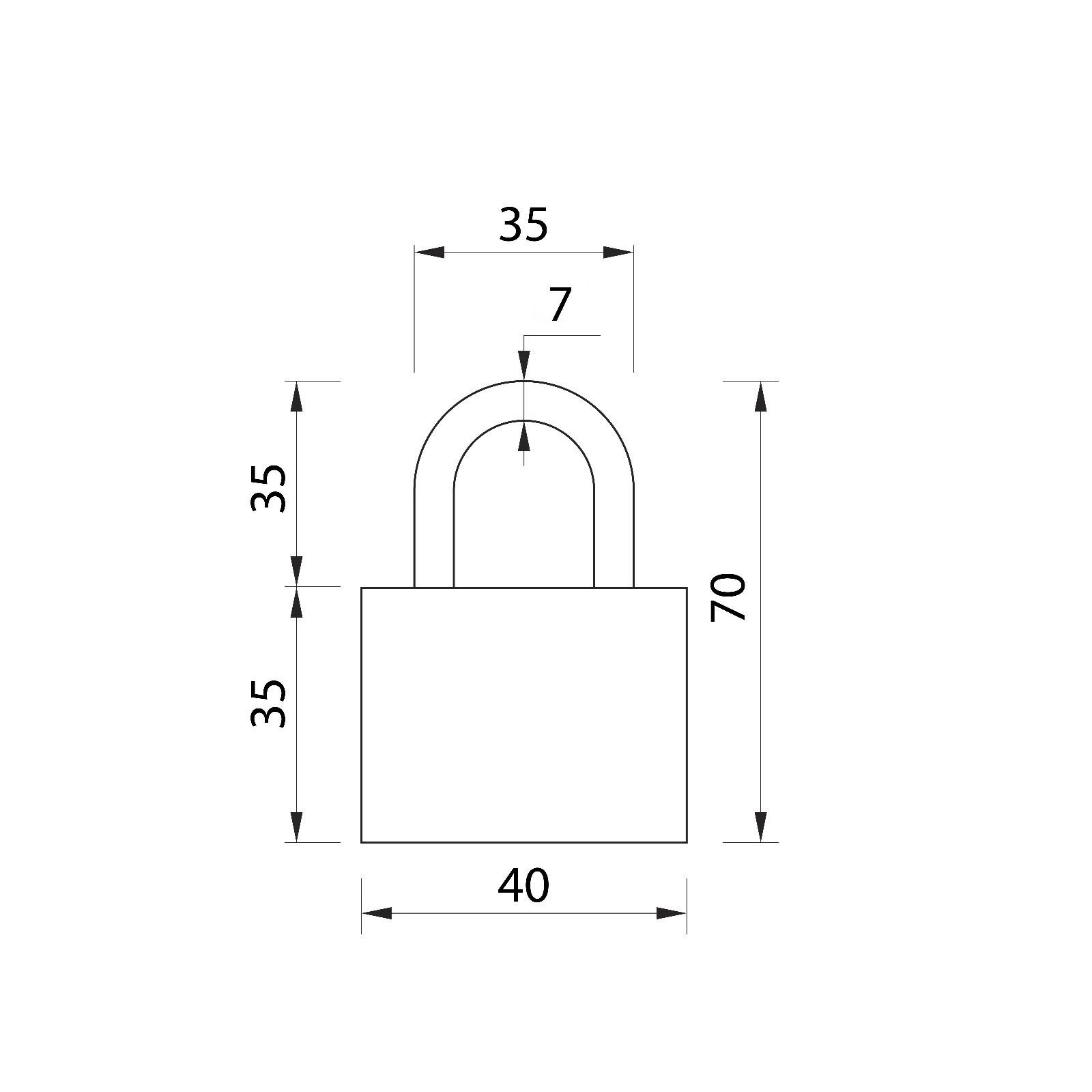 Замок навесной, 43x70 мм, 3 ключа, 4.3x2.5x7 см., ТУНДРА, Китай