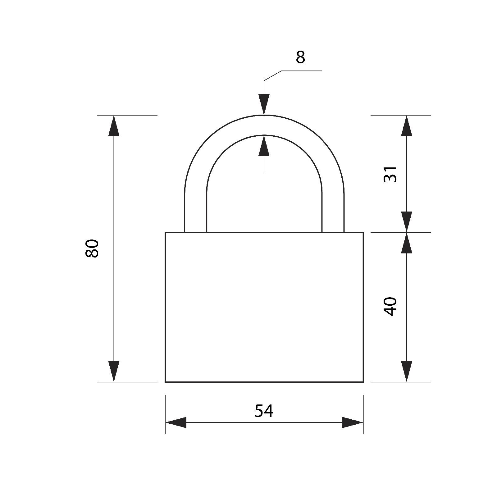 Замок навесной, 54x80 мм, 3 ключа, 5.4x2.5x9 см., ТУНДРА, Китай