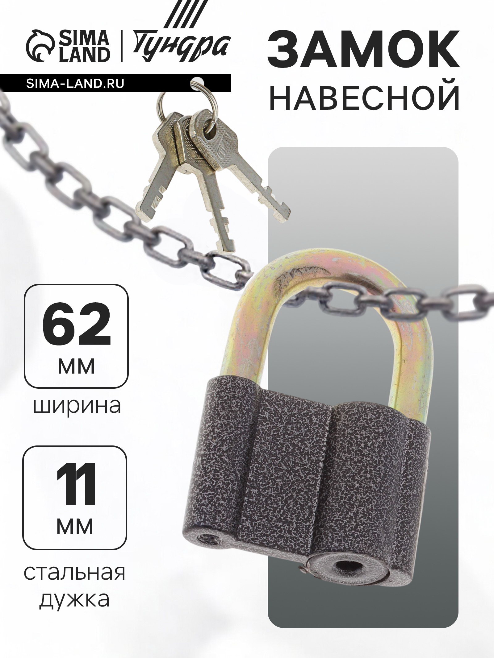 Замок навесной, 62x90 мм, 3 ключа, 6.2x2.5x9 см., ТУНДРА, Китай