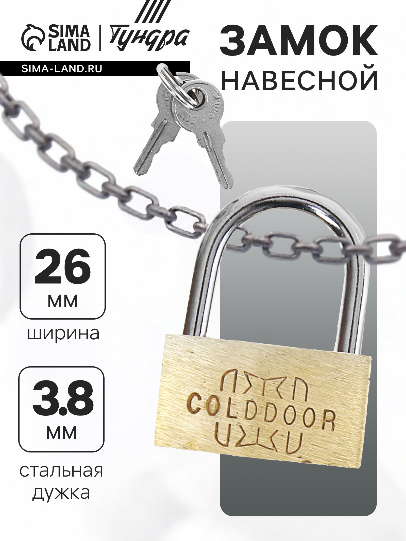 Замок навесной, тип 1, 26x35 мм, 2 ключа, 0.5x2.6x3.5 см., ТУНДРА, Китай