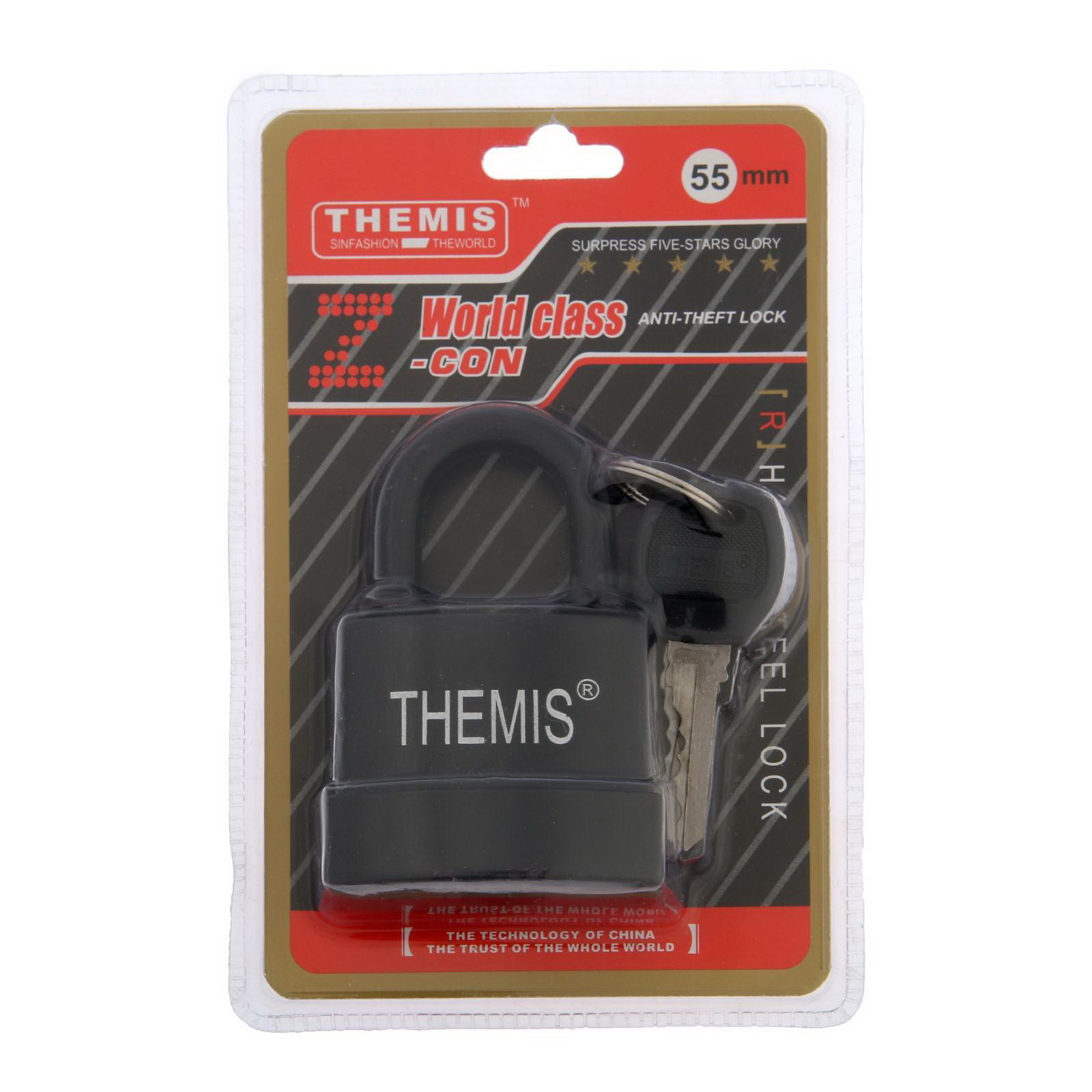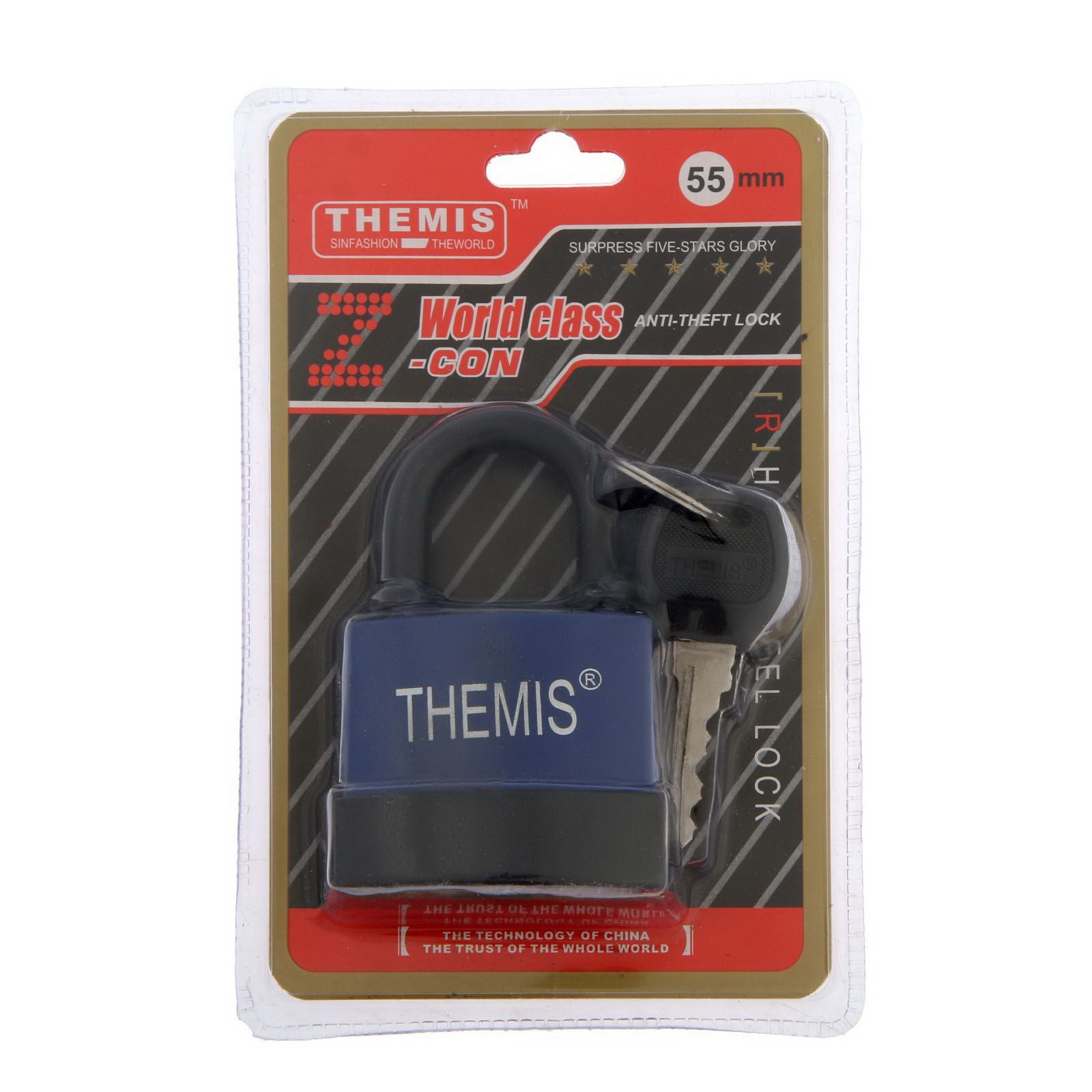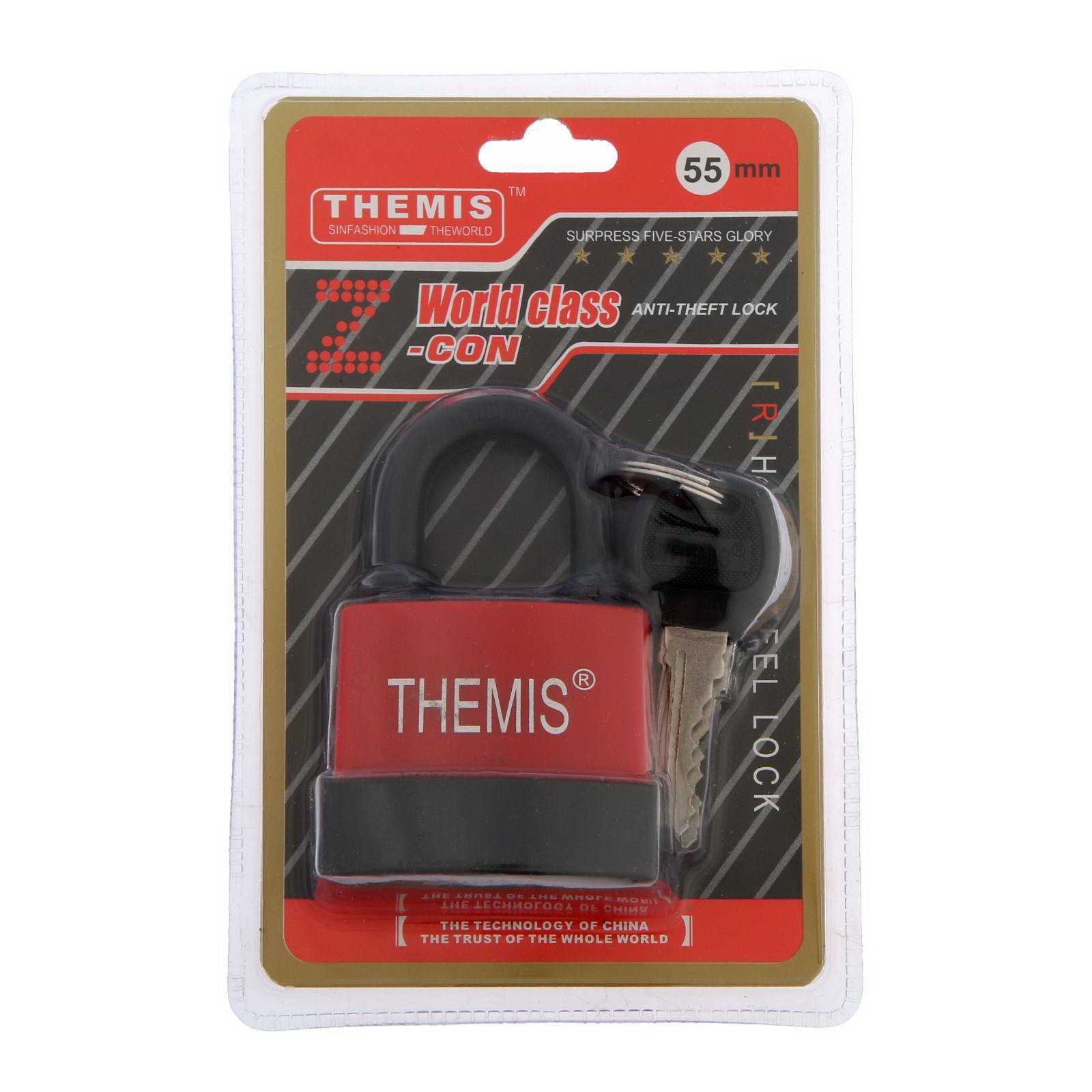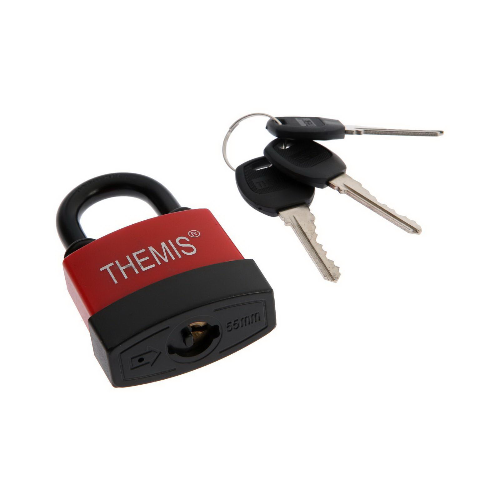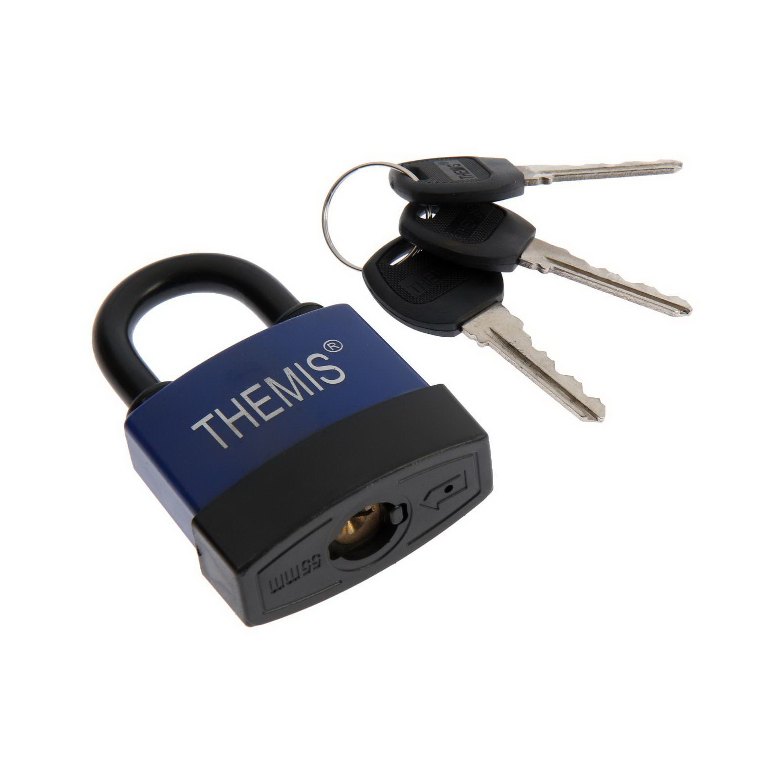 Замок навесной, 55 мм, медный цилиндр, влагозащищенный, короткая дужка, 3 ключа МИКС, 5.5x3x8.9 см., ТУНДРА, Китай