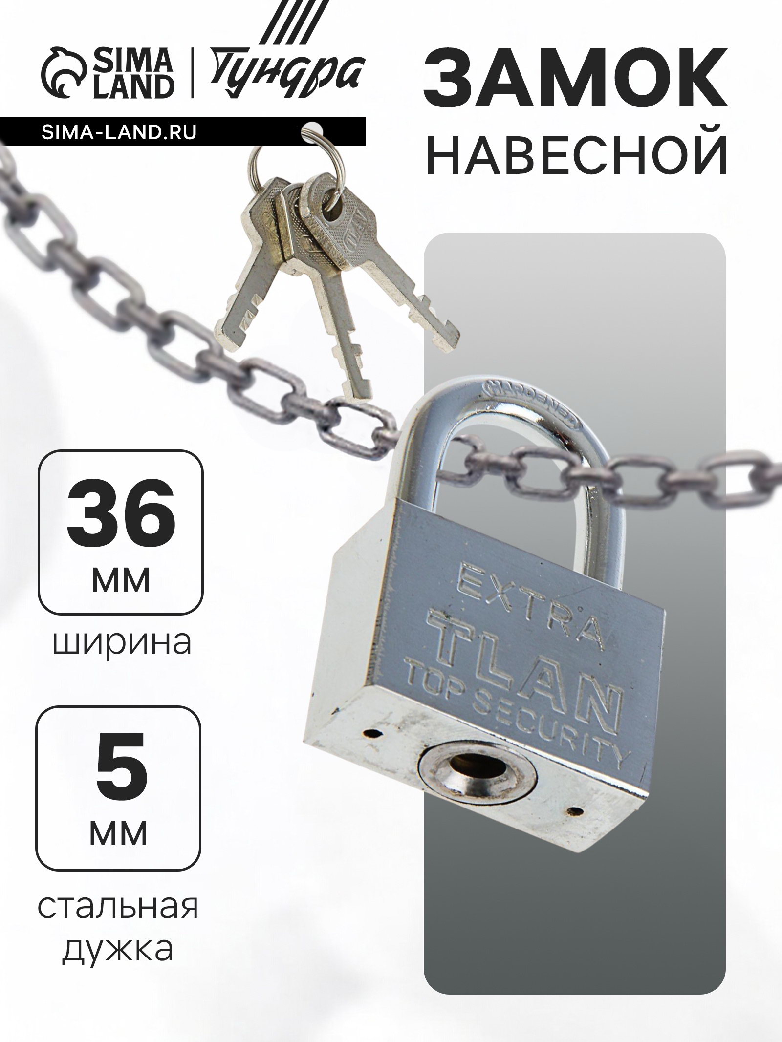 Замок навесной тип 14, 36x60 мм, 3 ключа, 3.6x1.5x6 см., ТУНДРА, Китай