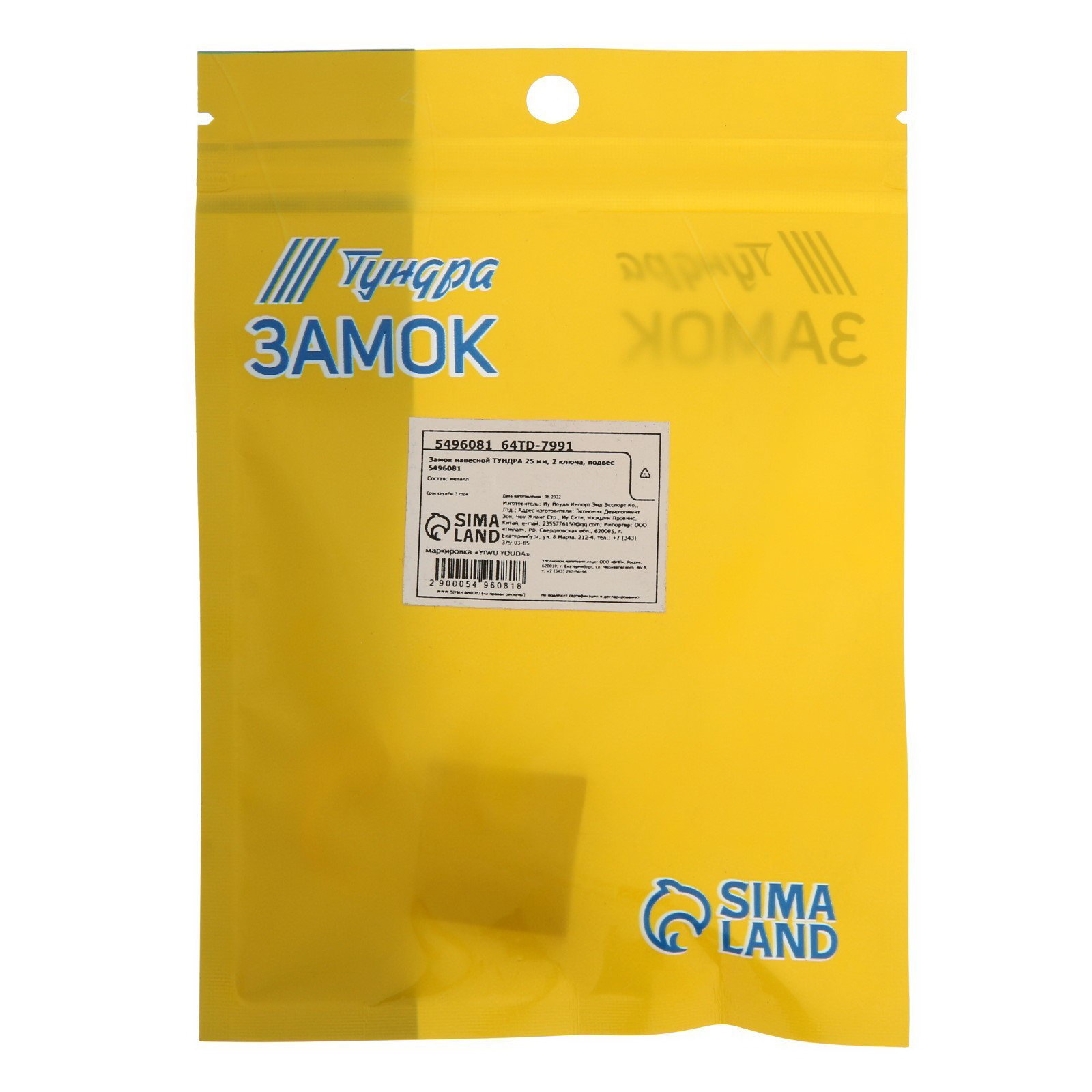 Замок навесной 25 мм, 2 ключа, подвес, 2.5x1x4 см., ТУНДРА, Китай