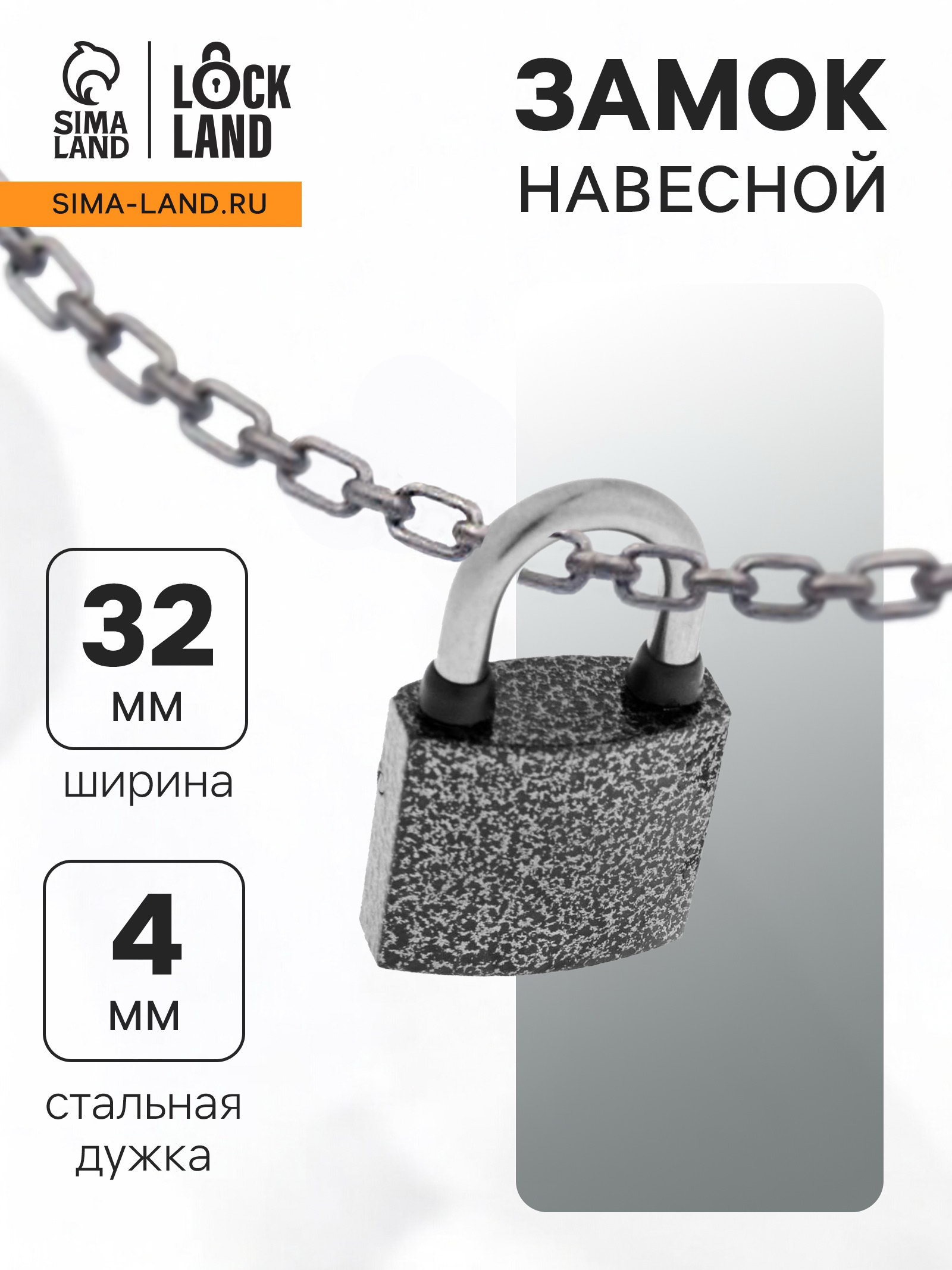 Замок навесной с влагозащитной дужкой, 32 мм, 3.2x1x6.5 см., LOCKLAND, Китай