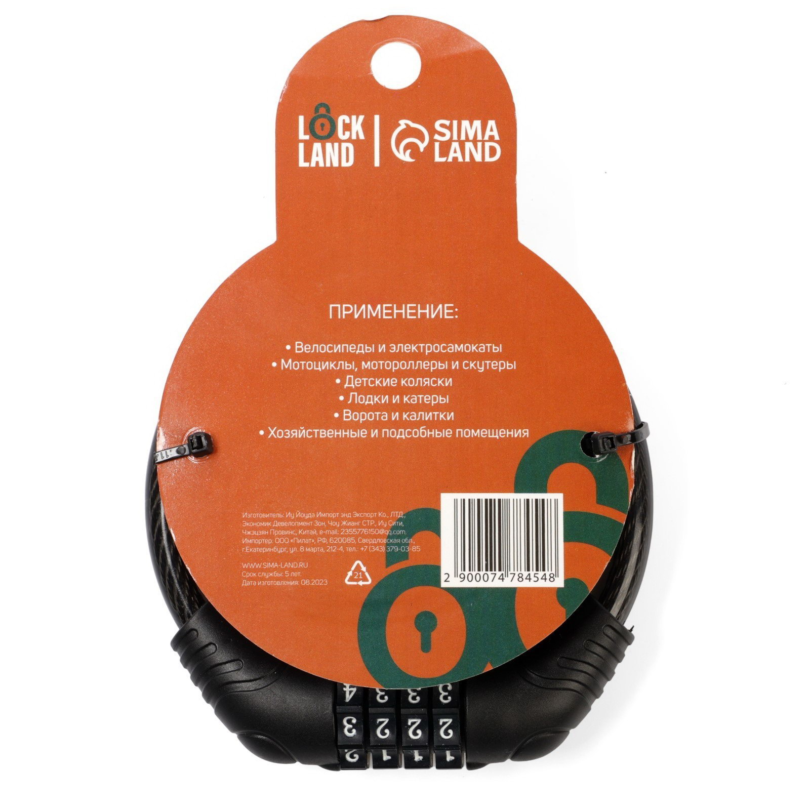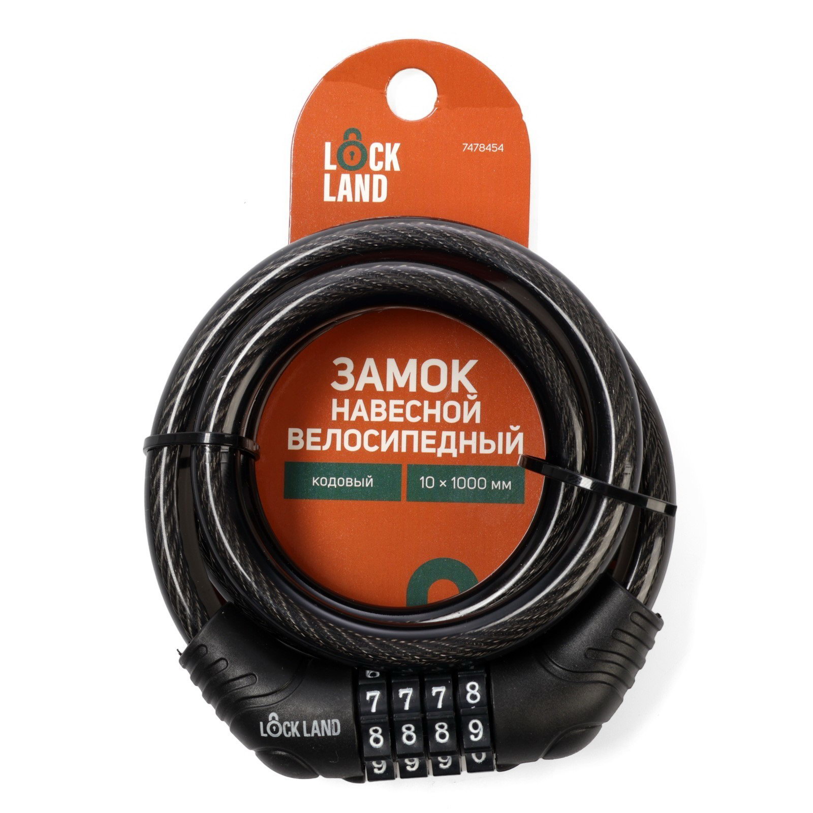 Замок навесной велосипедный кодовый, 10х1000 мм, 100х100х1 см., LOCKLAND, Китай