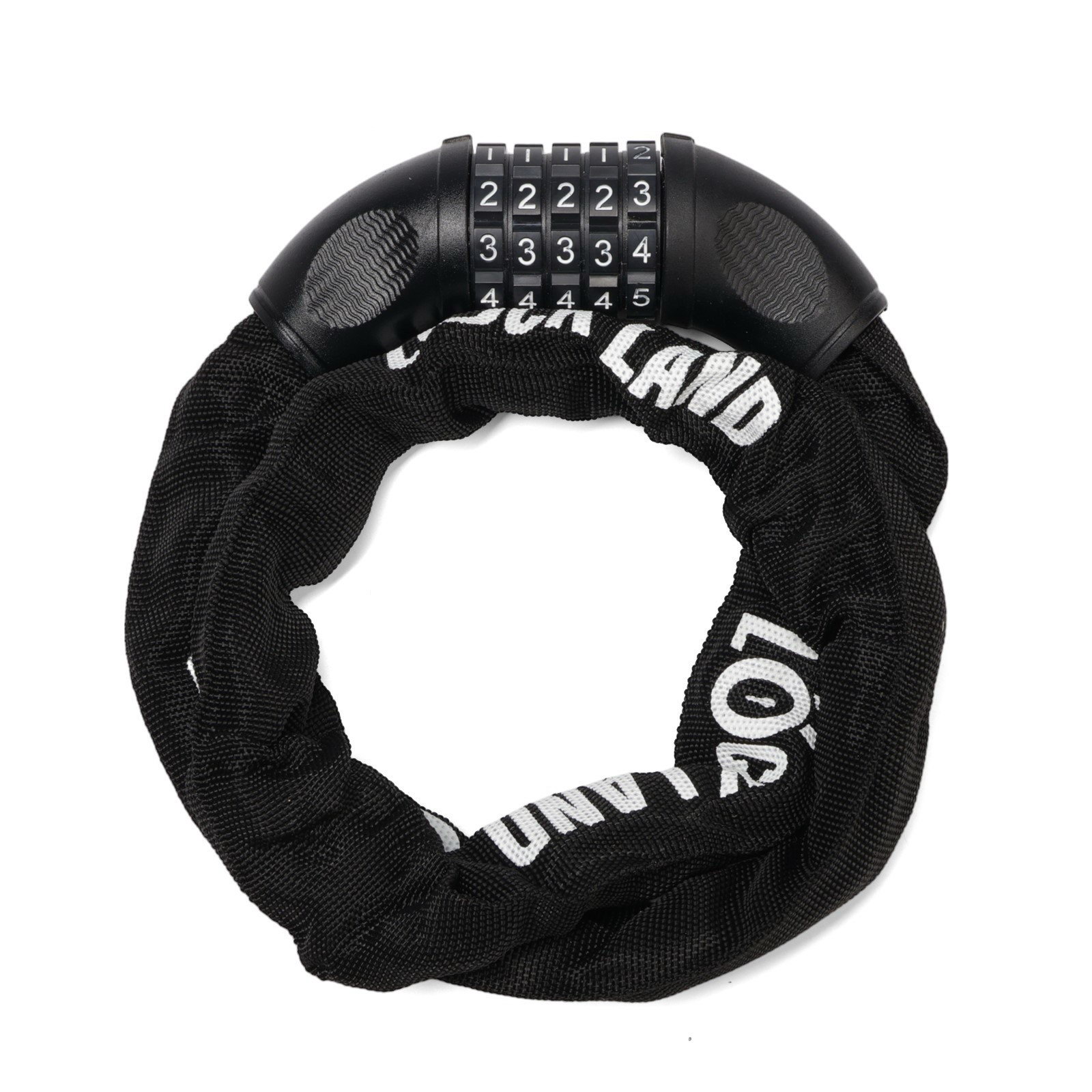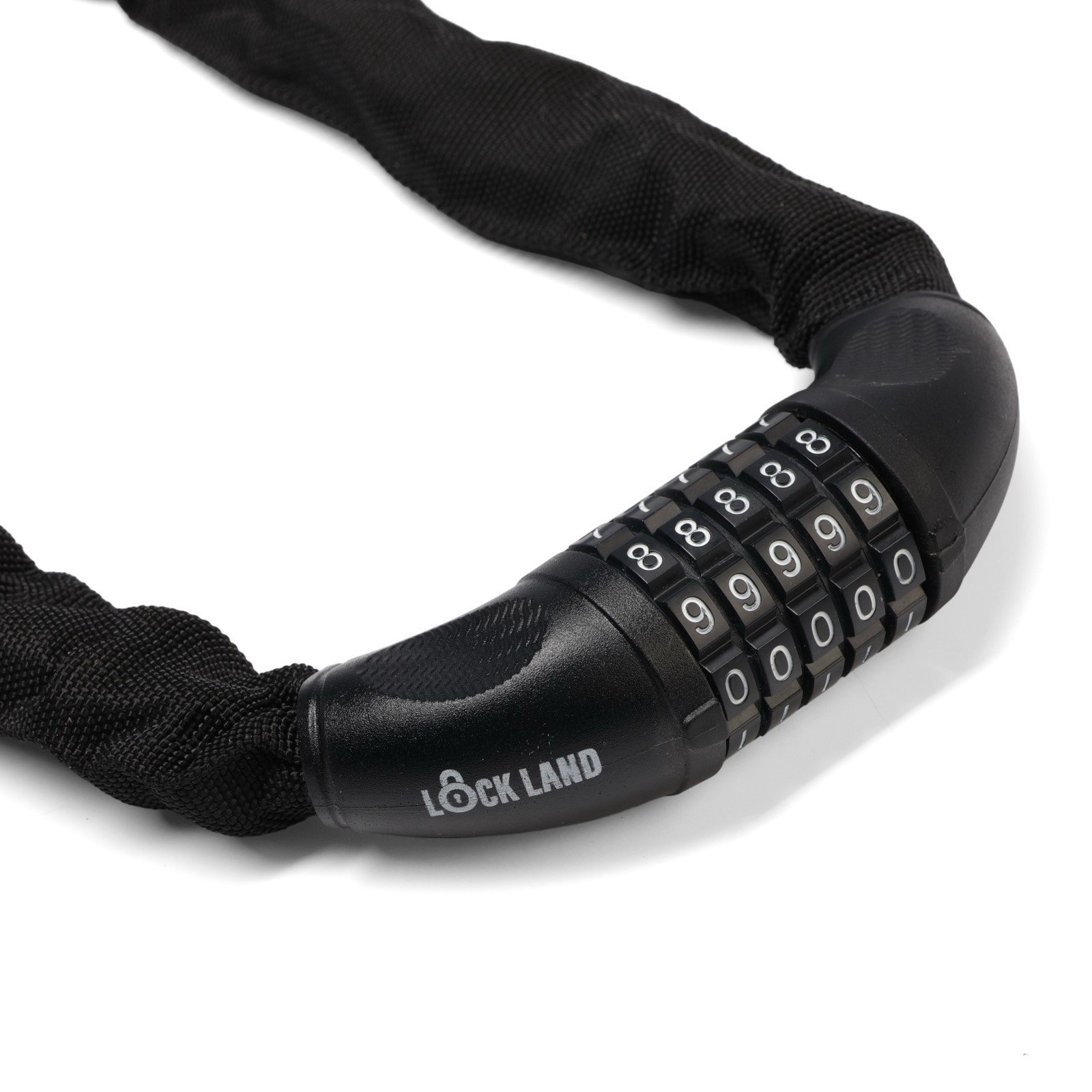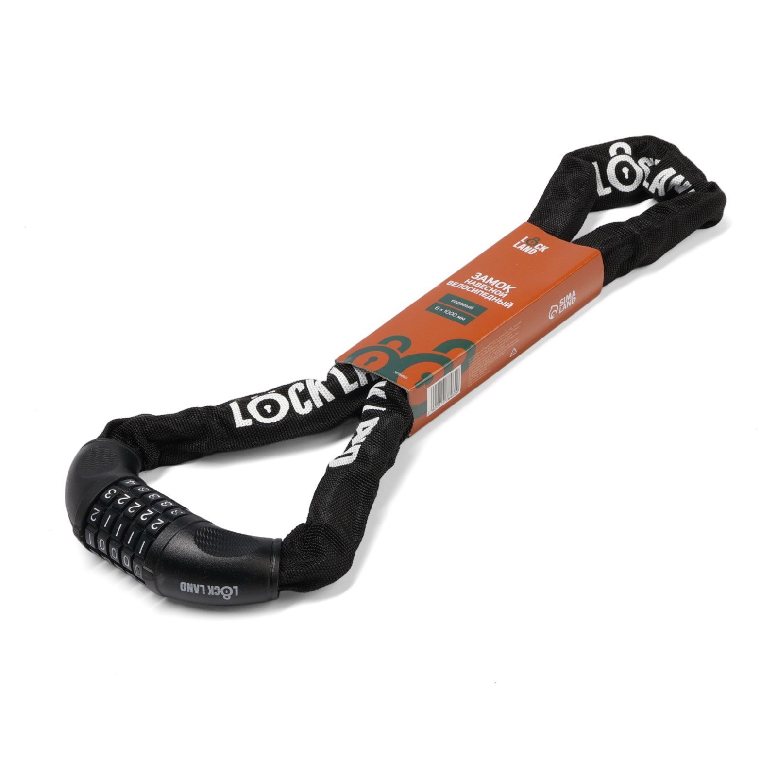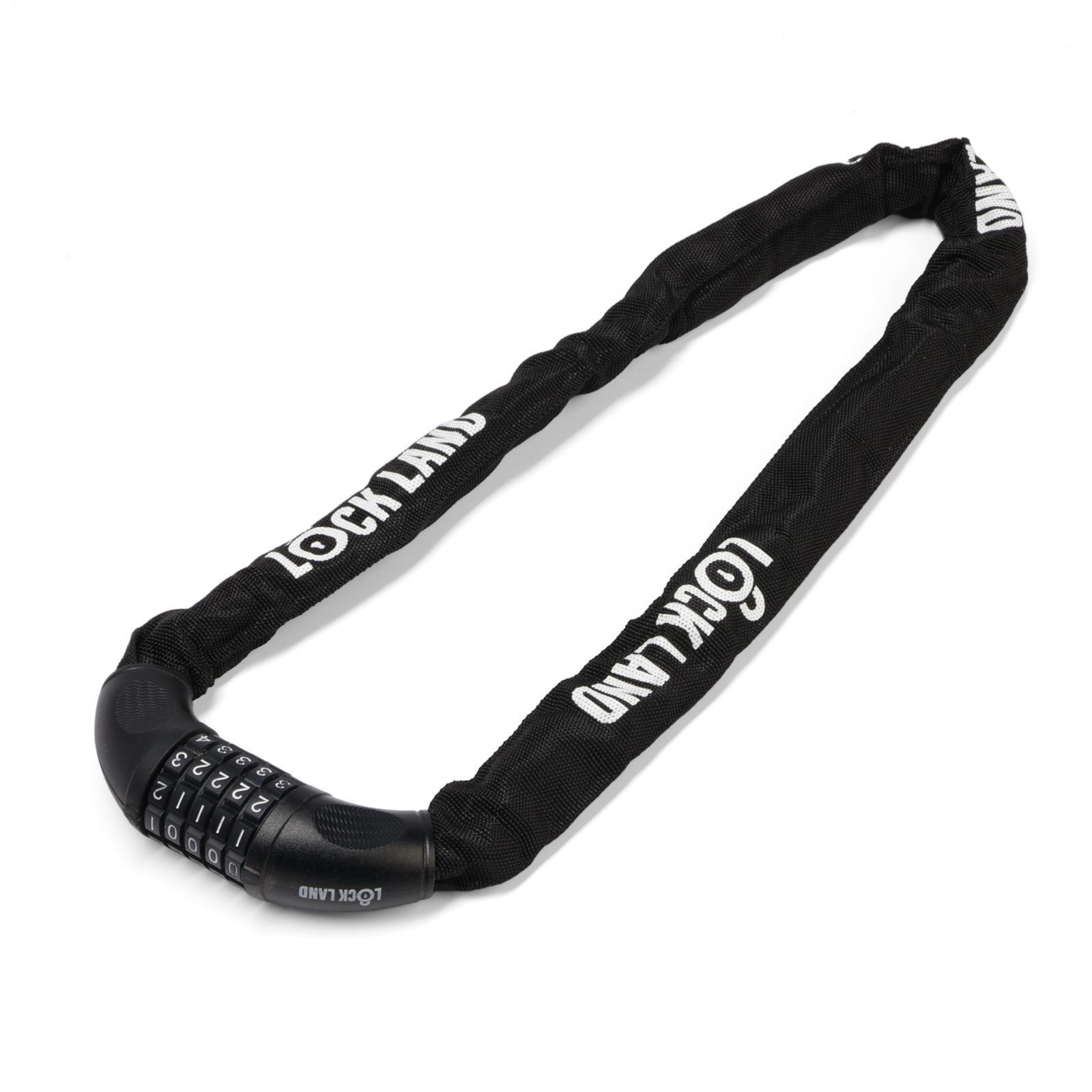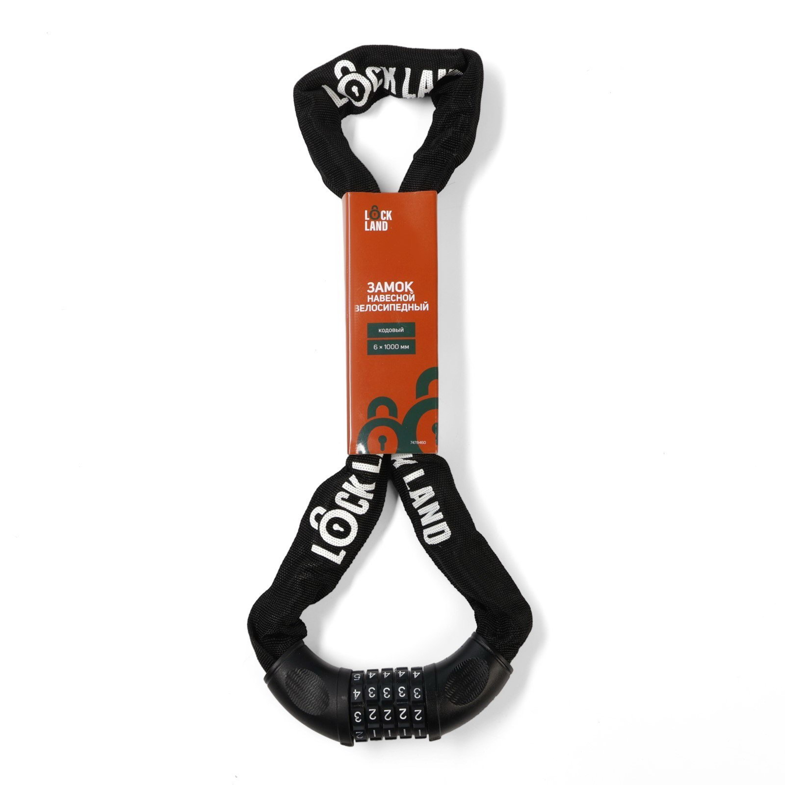 Замок навесной велосипедный кодовый, 6х1000 мм, цепь, цвет черный, 60х60х0.6 см., LOCKLAND, Китай