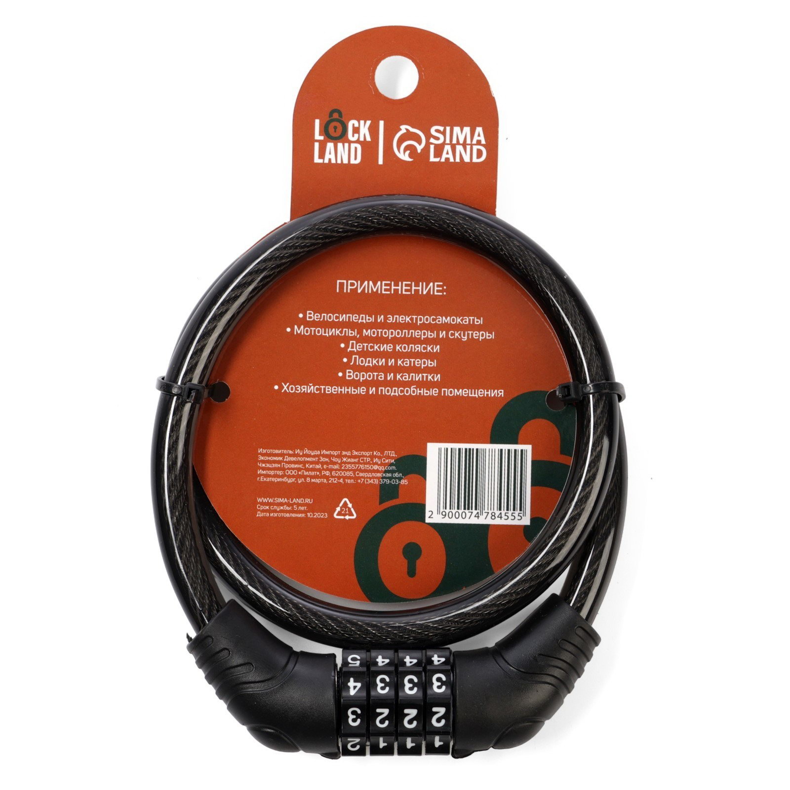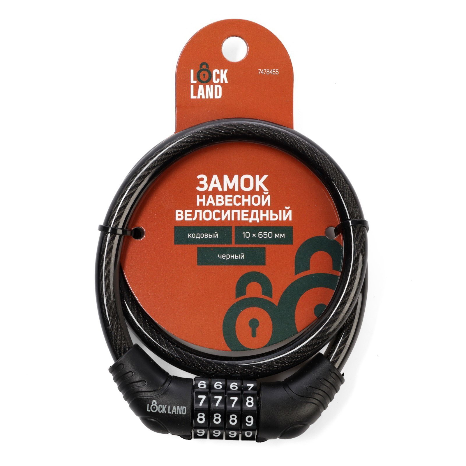 Замок навесной велосипедный кодовый, 10х650 мм, цвет черный, 100х100х1 см., LOCKLAND, Китай