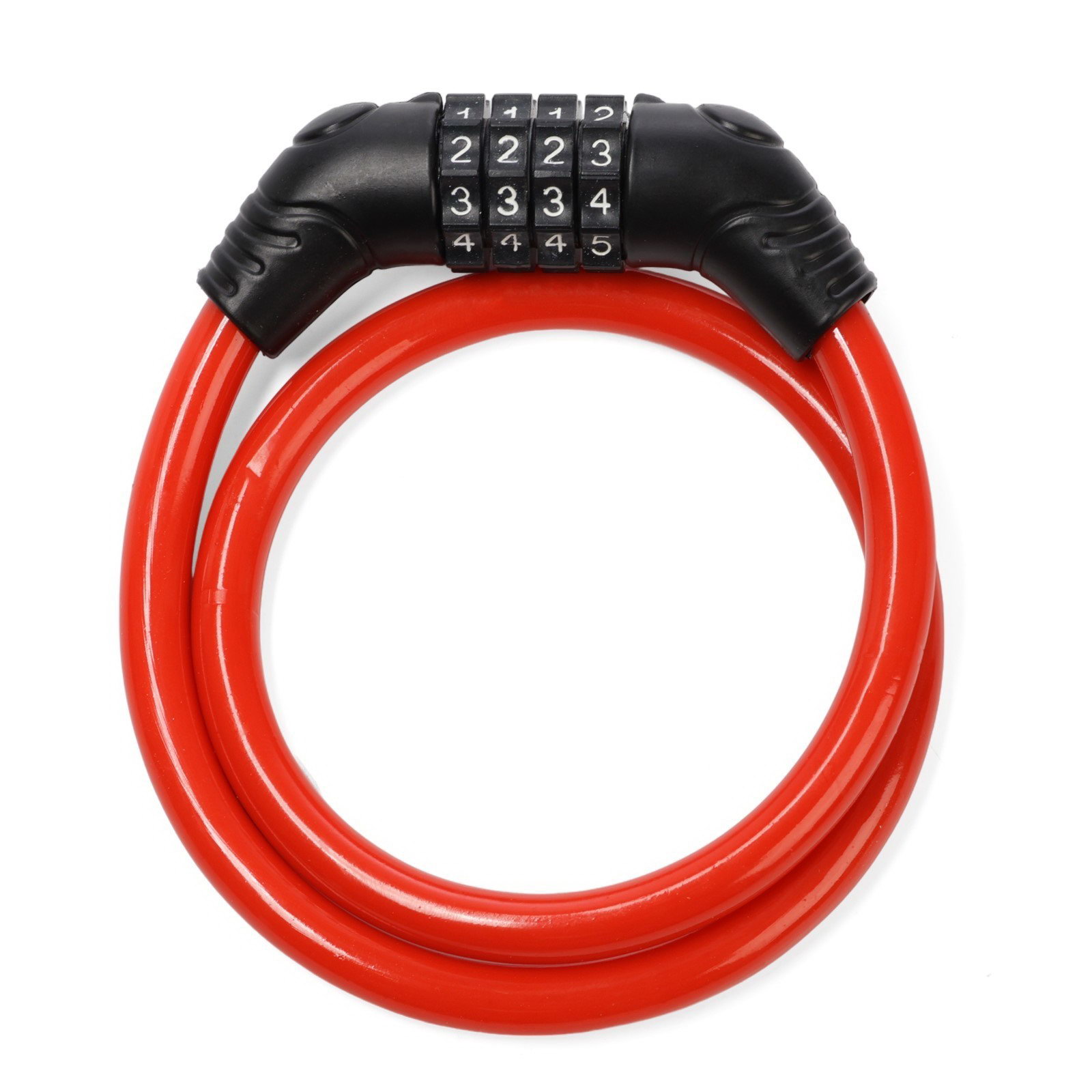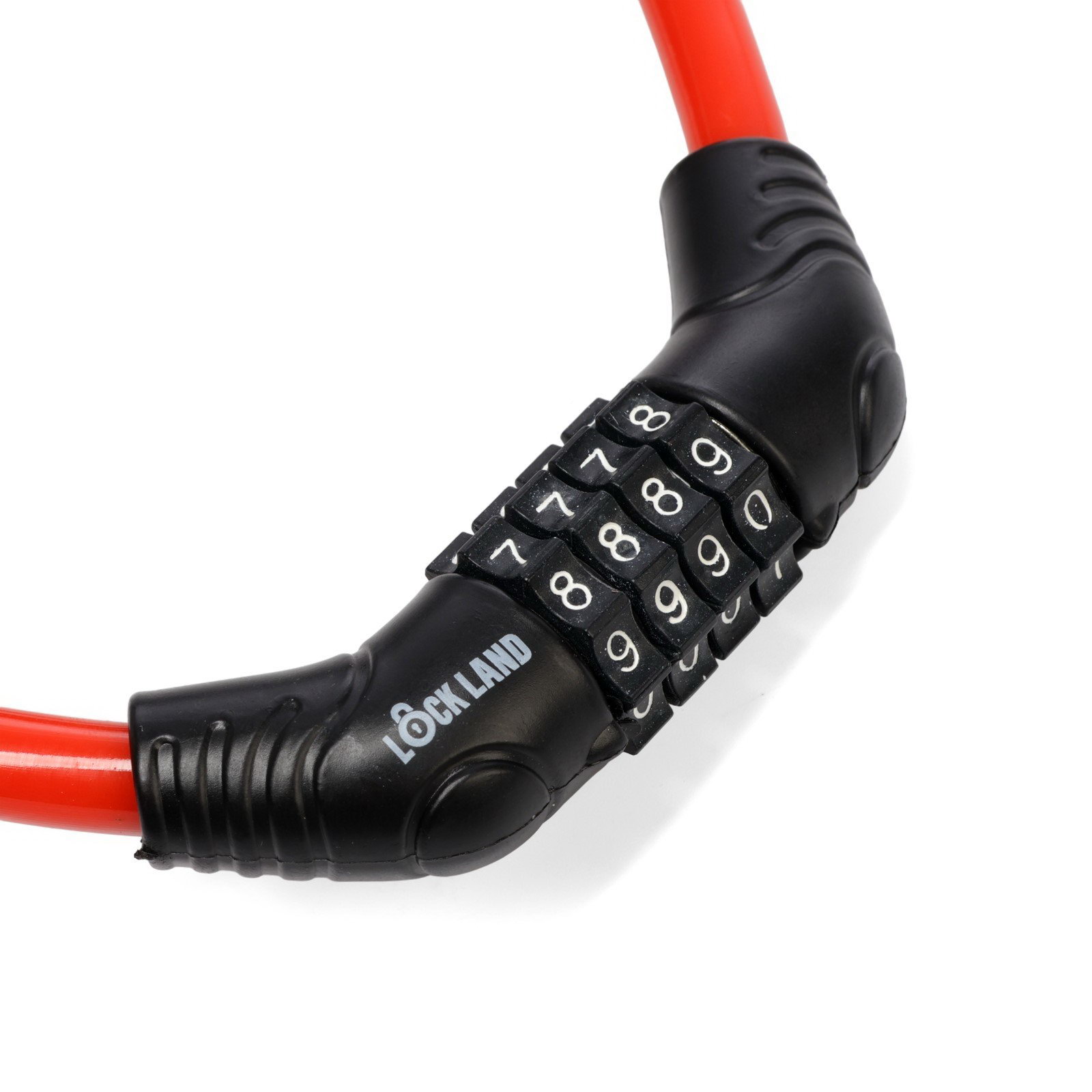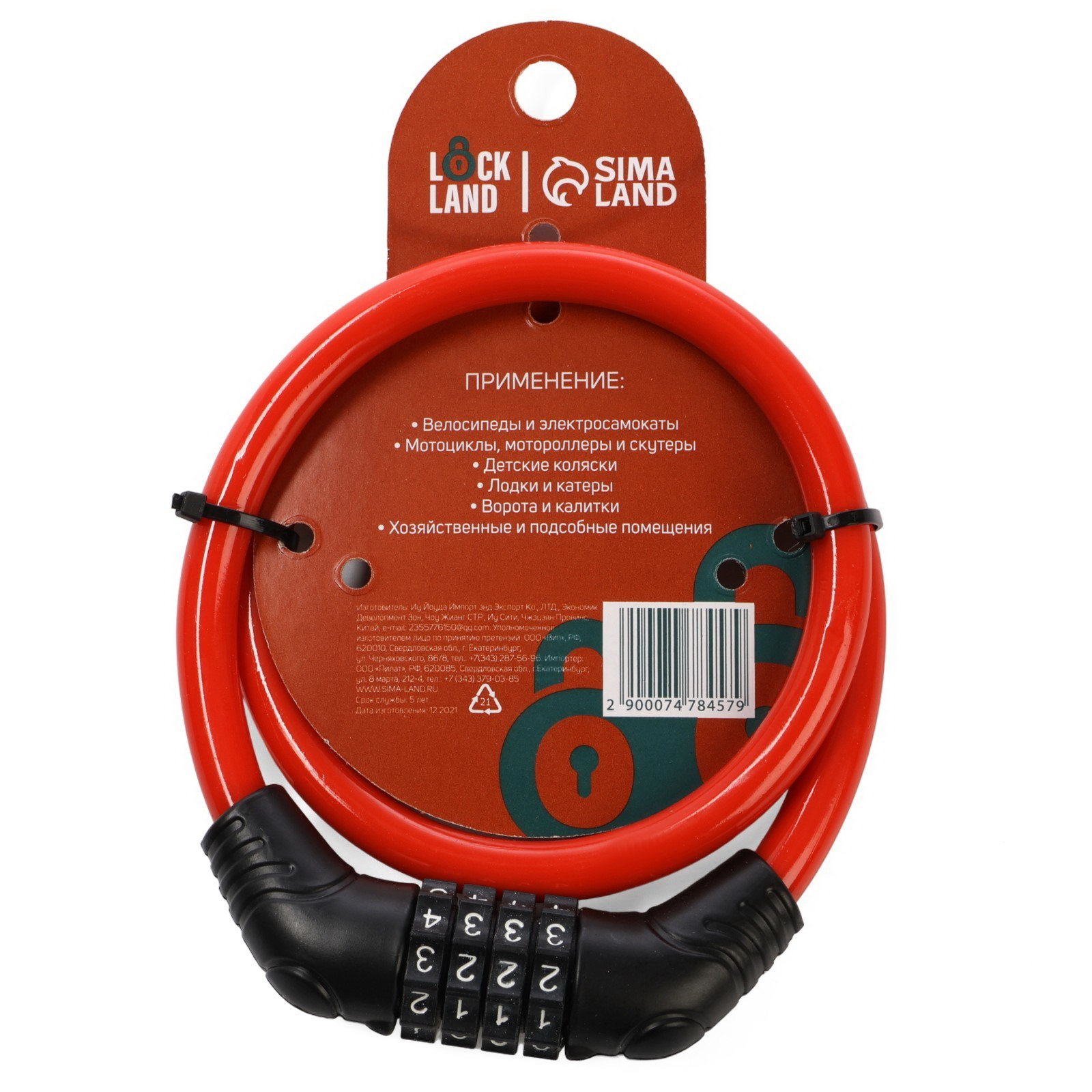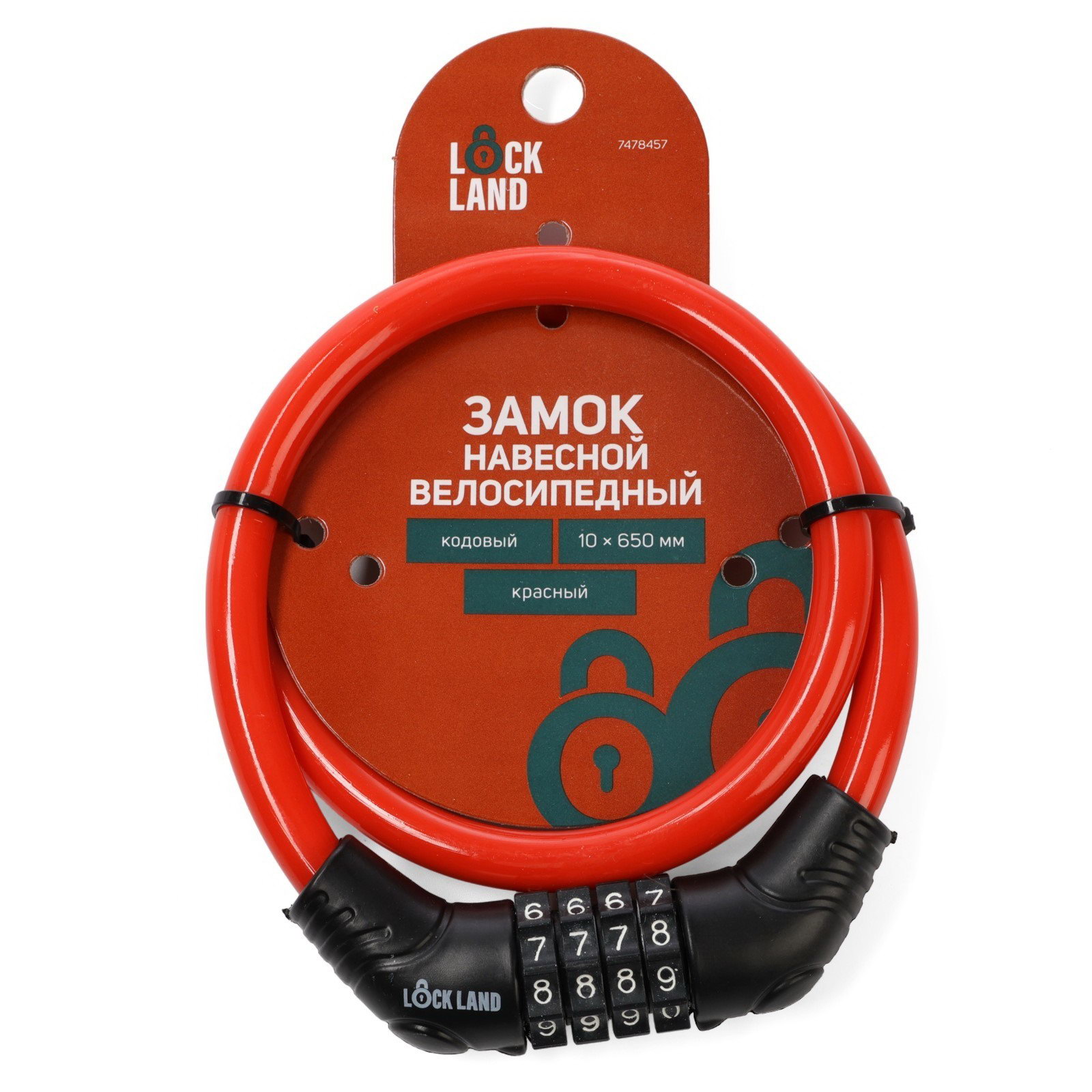 Замок навесной велосипедный кодовый, 10х650 мм, цвет красный, 100х100х1 см., LOCKLAND, Китай