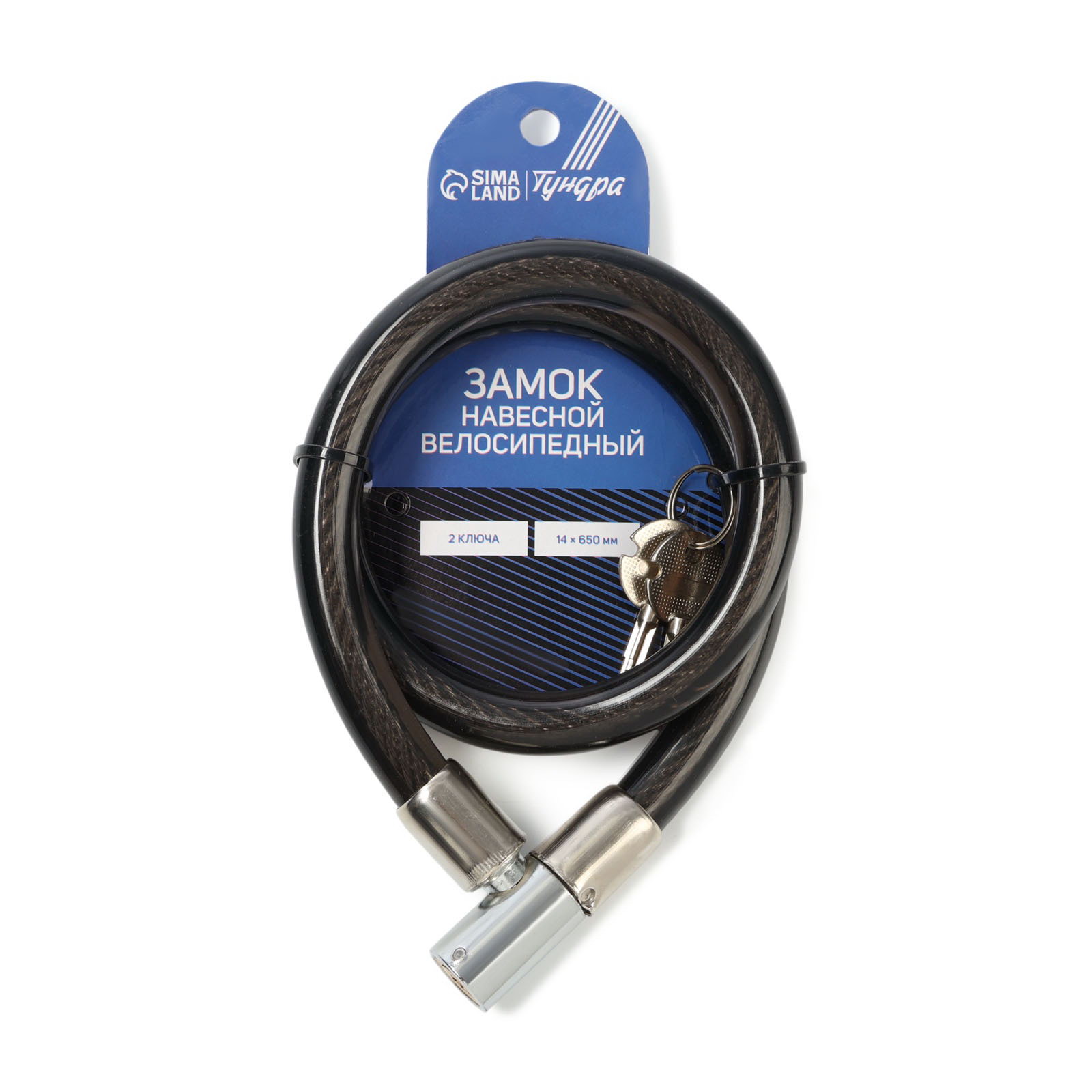 Замок навесной велосипедный 14x650 мм, 2 ключа, черный, 140х140х1.4 см., ТУНДРА, Китай