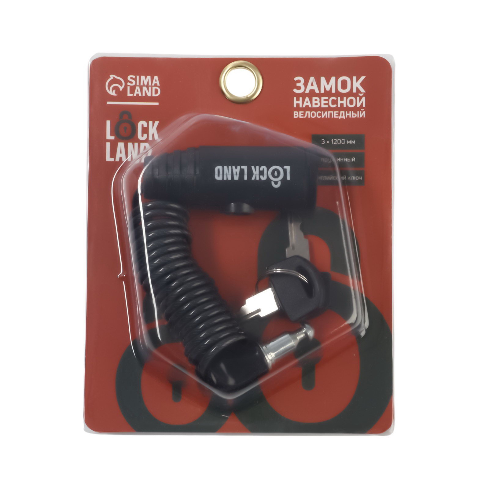 Замок навесной велосипедный пружинный, 3х1200 мм, английский ключ, 30х30х2.5 см., LOCKLAND, Китай
