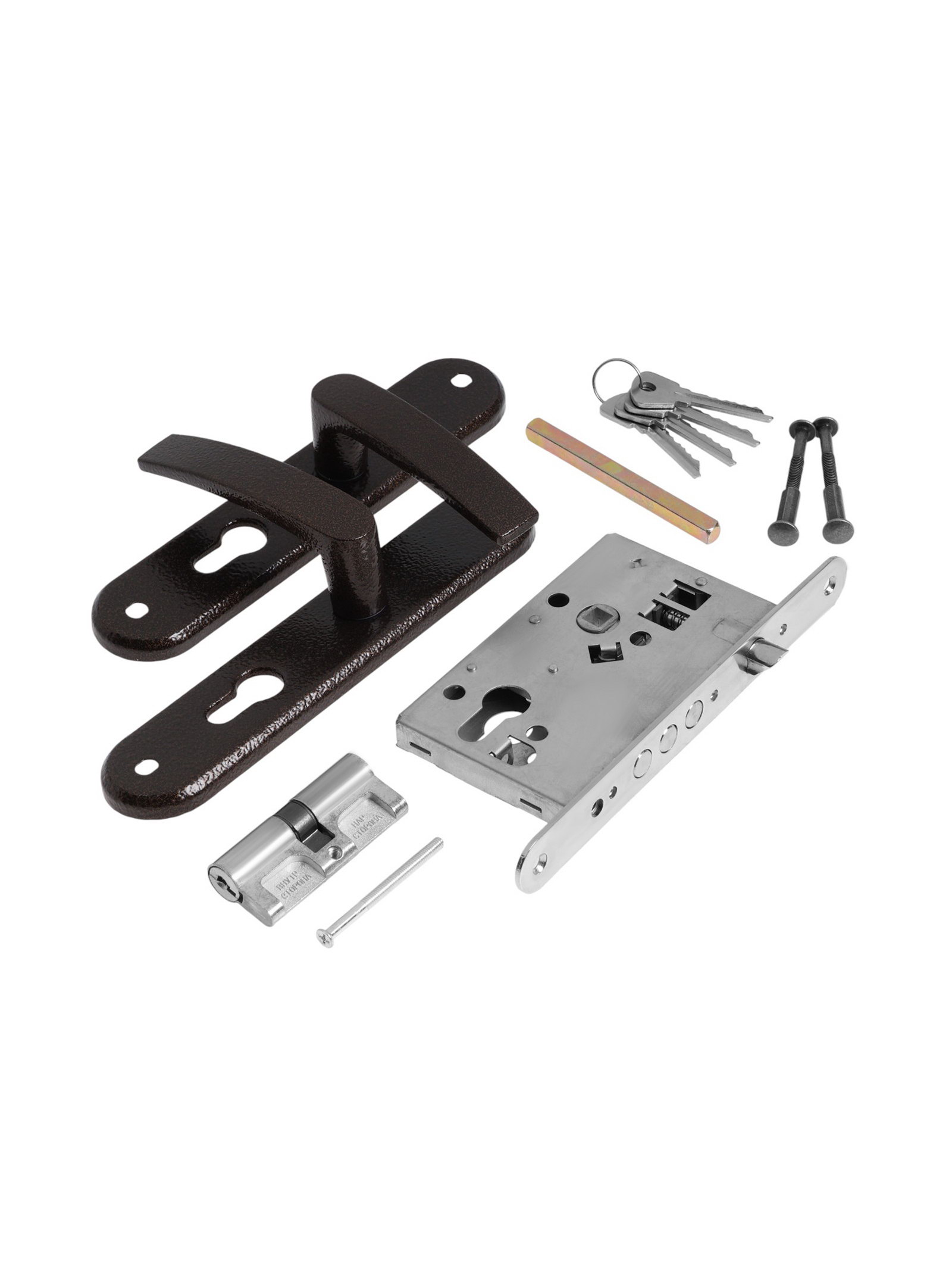 Размер упаковки: 10 x 8 x 23 см. tnved: 8301401000 Гарантийный срок, мес.: 6 С ручками: Да С защёлкой: Да Бэксет, мм: 55 Тип механизма замка: Цилиндровый Цвет: Коричневый Форма ригеля: Цилиндр Количество ригелей: 3 Врезной замок LOCKLAND с ручкой, цилиндровый, коричневый это комплект для установки на межкомнатную дверь. Замок совмещает фиксацию ригелями, фалевую защелку и поворотную ручку.