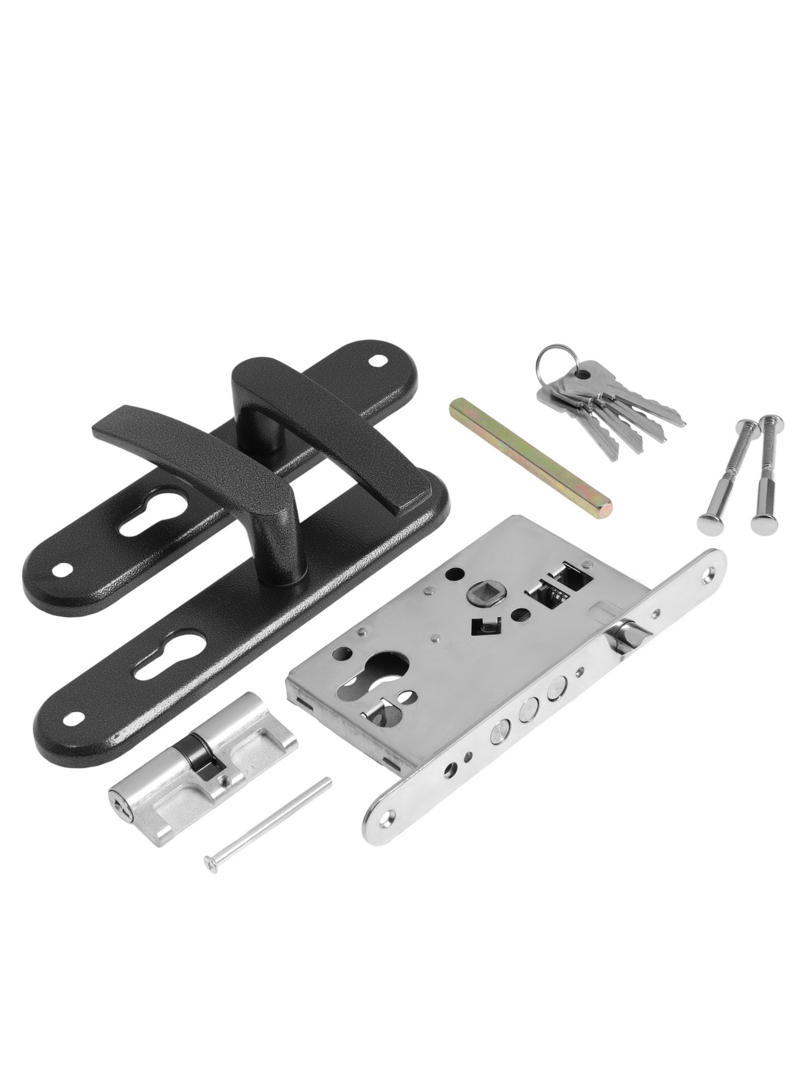 Размер упаковки: 10 x 8 x 23 см. Гарантийный срок, мес.: 6 tnved: 8301401000 С защёлкой: Да С ручками: Да Бэксет, мм: 55 Цвет: Серый Тип механизма замка: Цилиндровый Количество ригелей: 3 Форма ригеля: Цилиндр Врезной замок LOCKLAND с ручкой, серый, 4 ключа это цилиндровый механизм для установки в межкомнатную дверь. Комплект включает поворотную ручку и фиксирующую защелку.