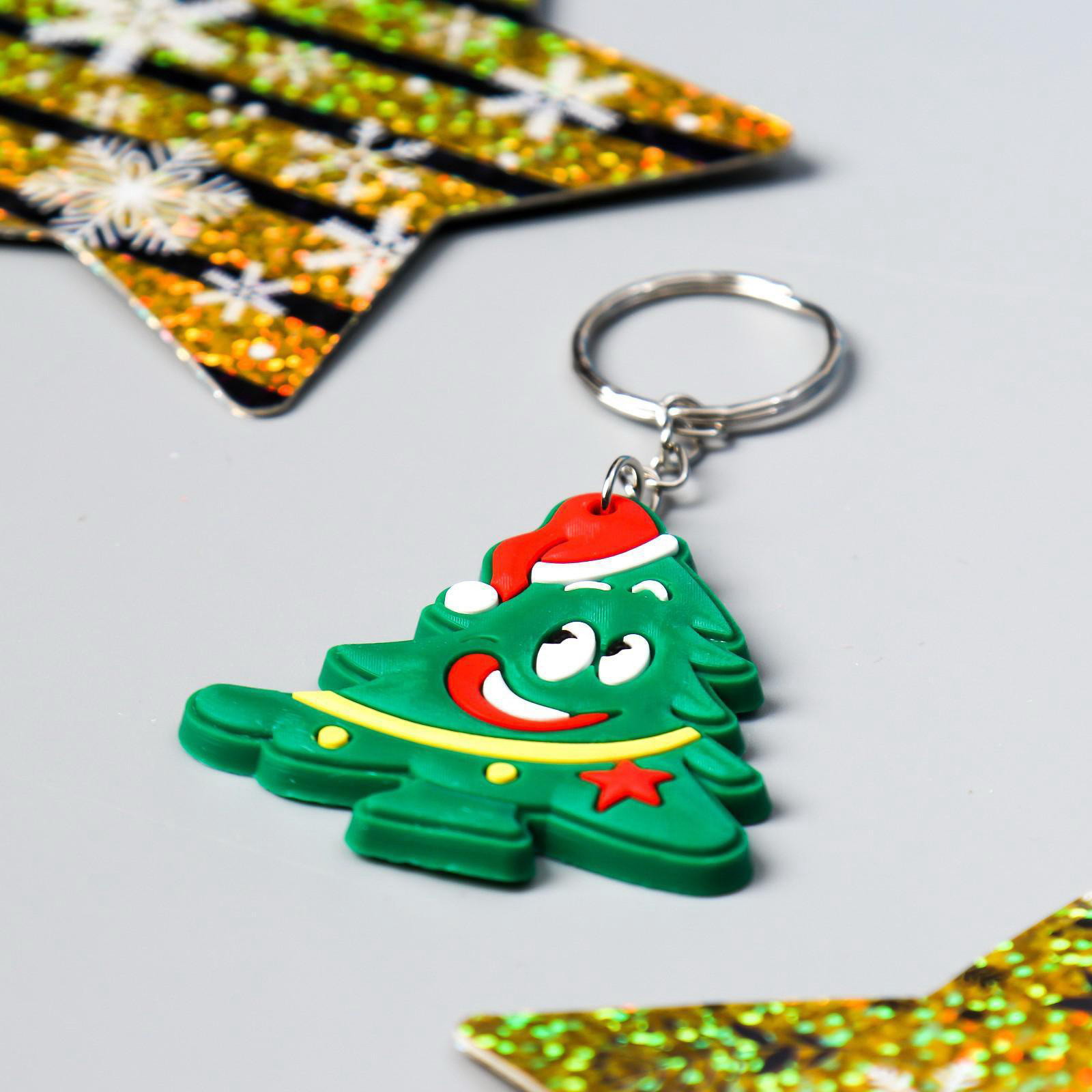 Брелок для ключей на кольце "Новый год", резина, 5x4.5 см, МИКС, 4.5x5 см., Китай