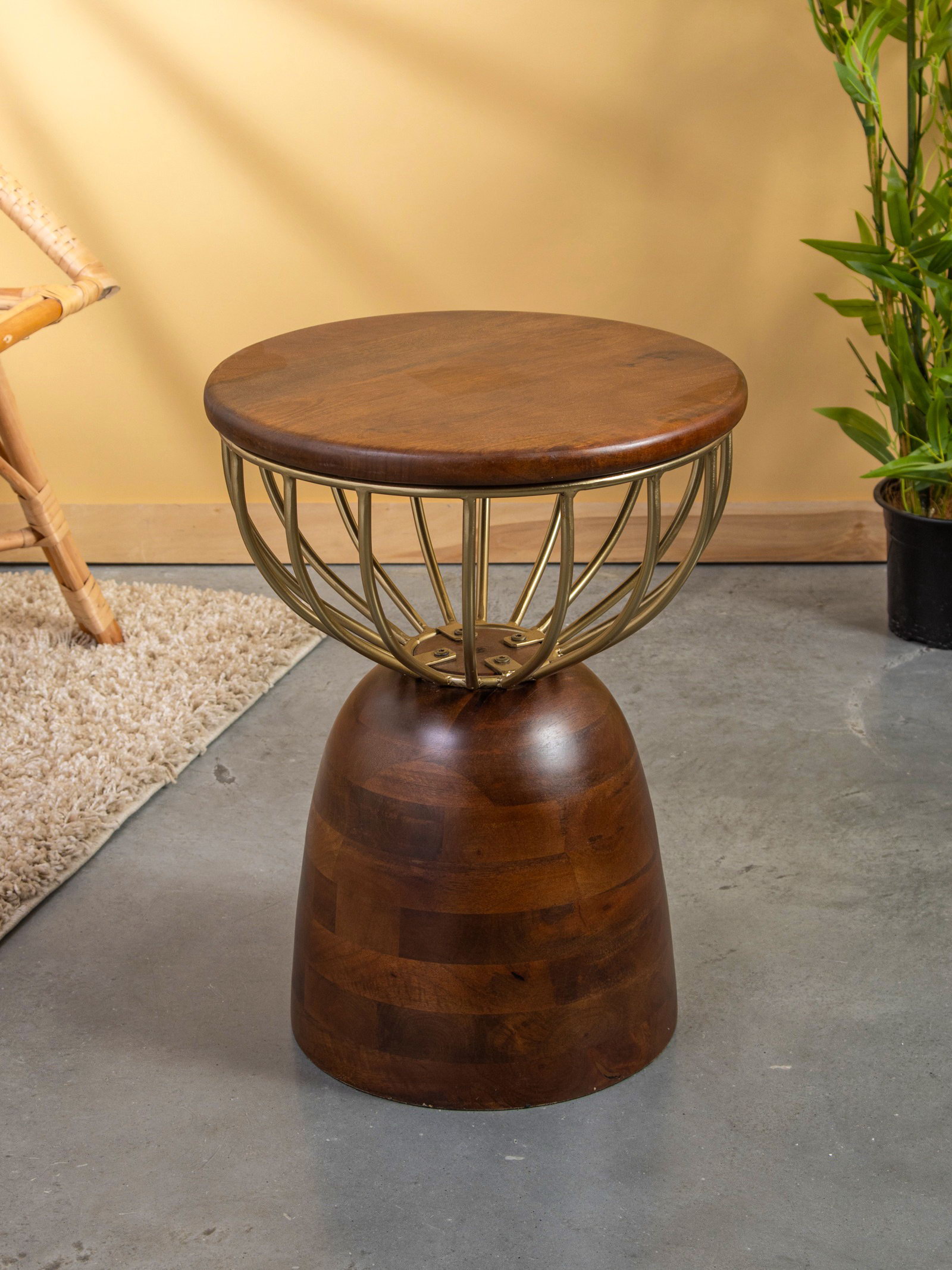 Столик журнальный "Фундук", 40.5x40.5x54.5 см, дерево, железо, 40.5x40.5x54.5 см., Индия