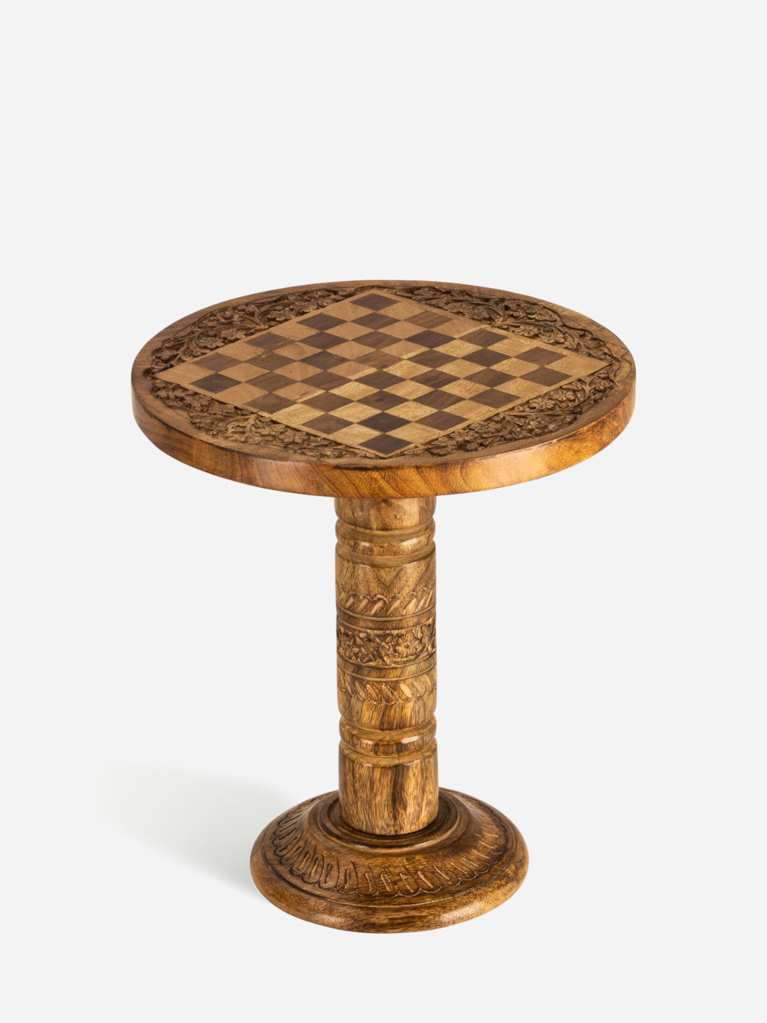 Шахматный столик с фигурами, 30x30x34 см, манговое дерево, 30x30x33 см., Индия