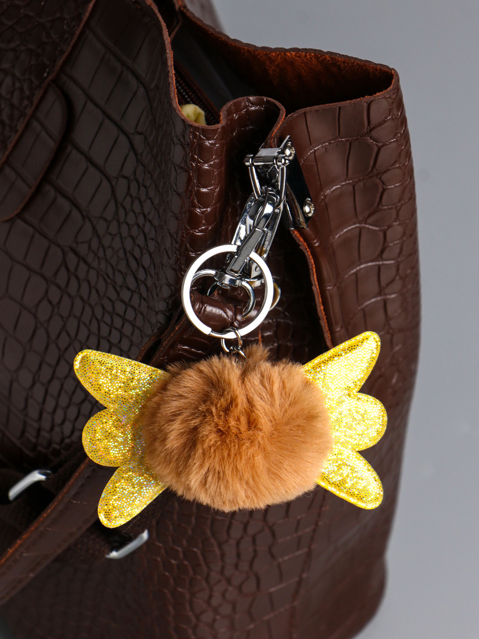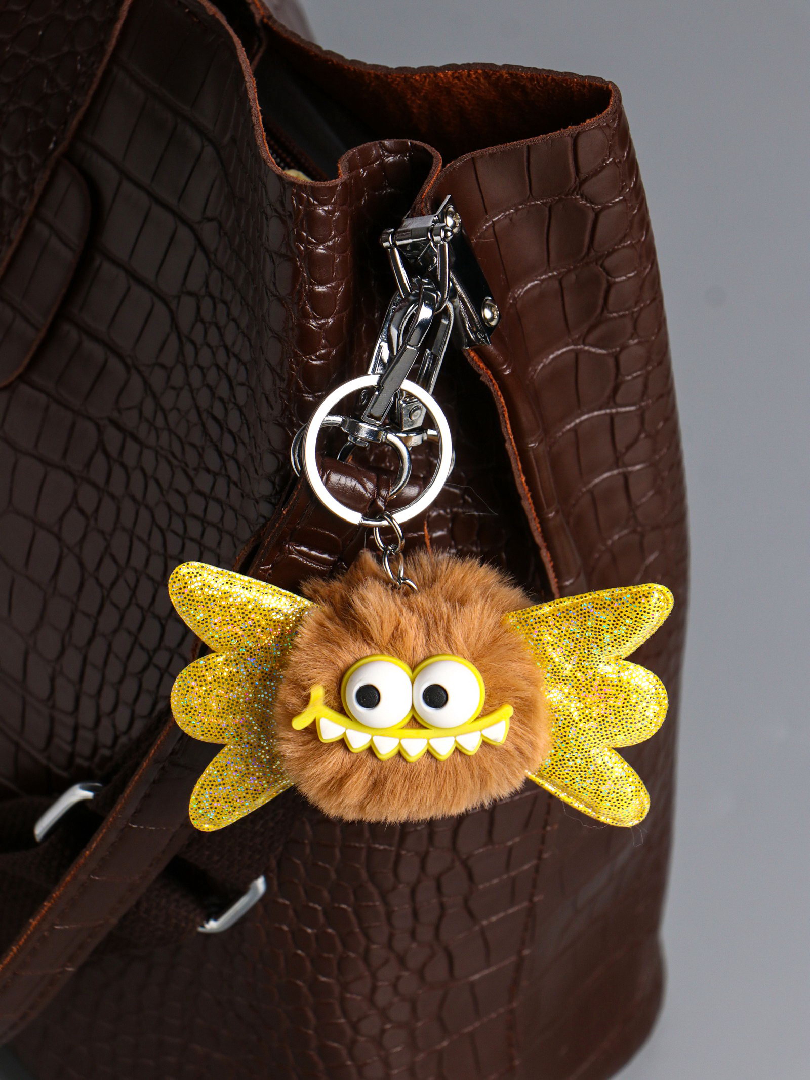 Брелок для ключей на кольце "Пушистик: Муха", на сумку, рюкзак, беж, 9x10x5 см, 10.5x10.5x5 см., Китай